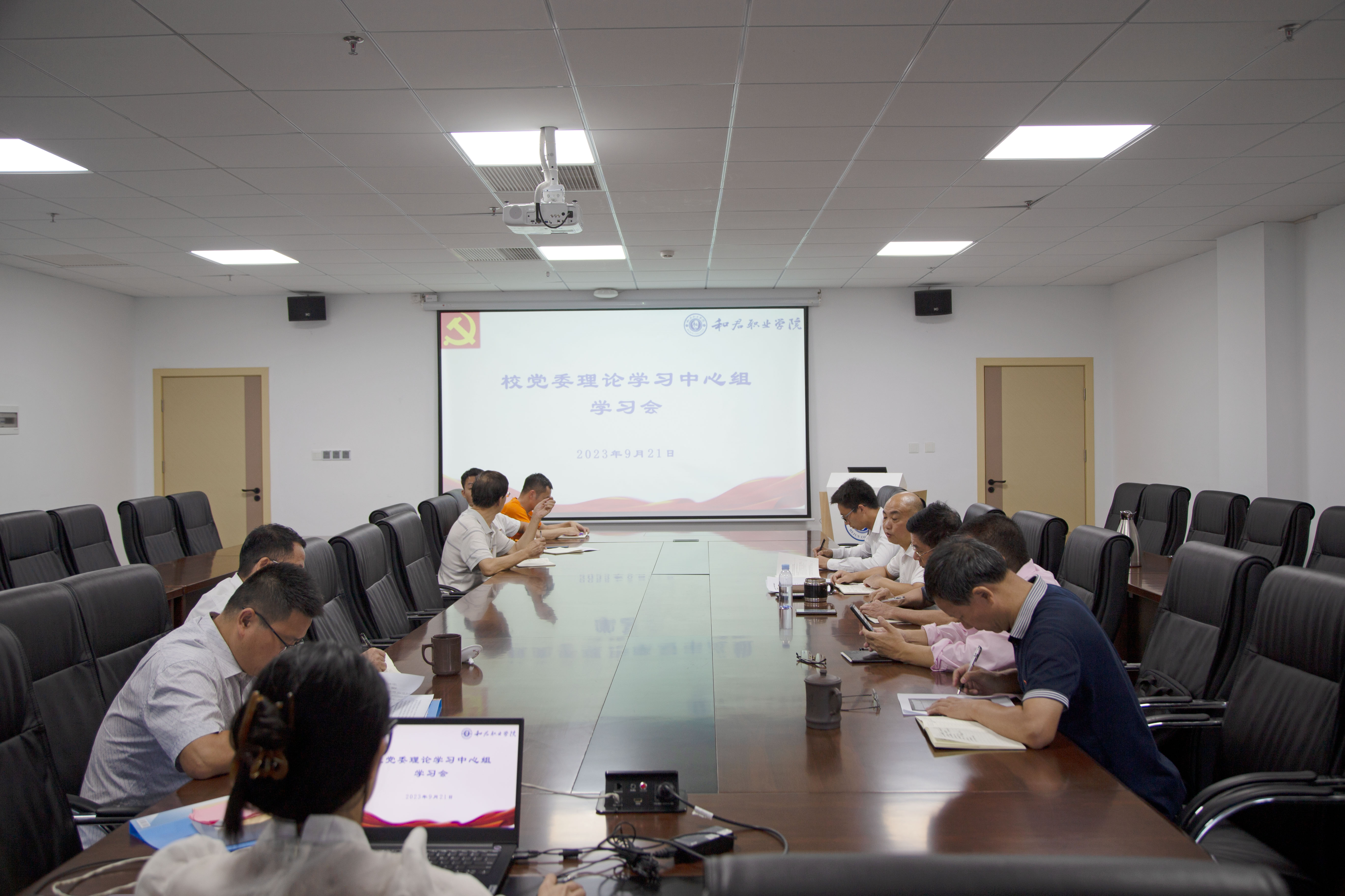 9月21日下午🧑🏻‍🎨,校党委理论学习中心组在607会议室召开学习会,校党委委员参会学习,各部门负责人列席学习,党委书记王德平主持会议❌。