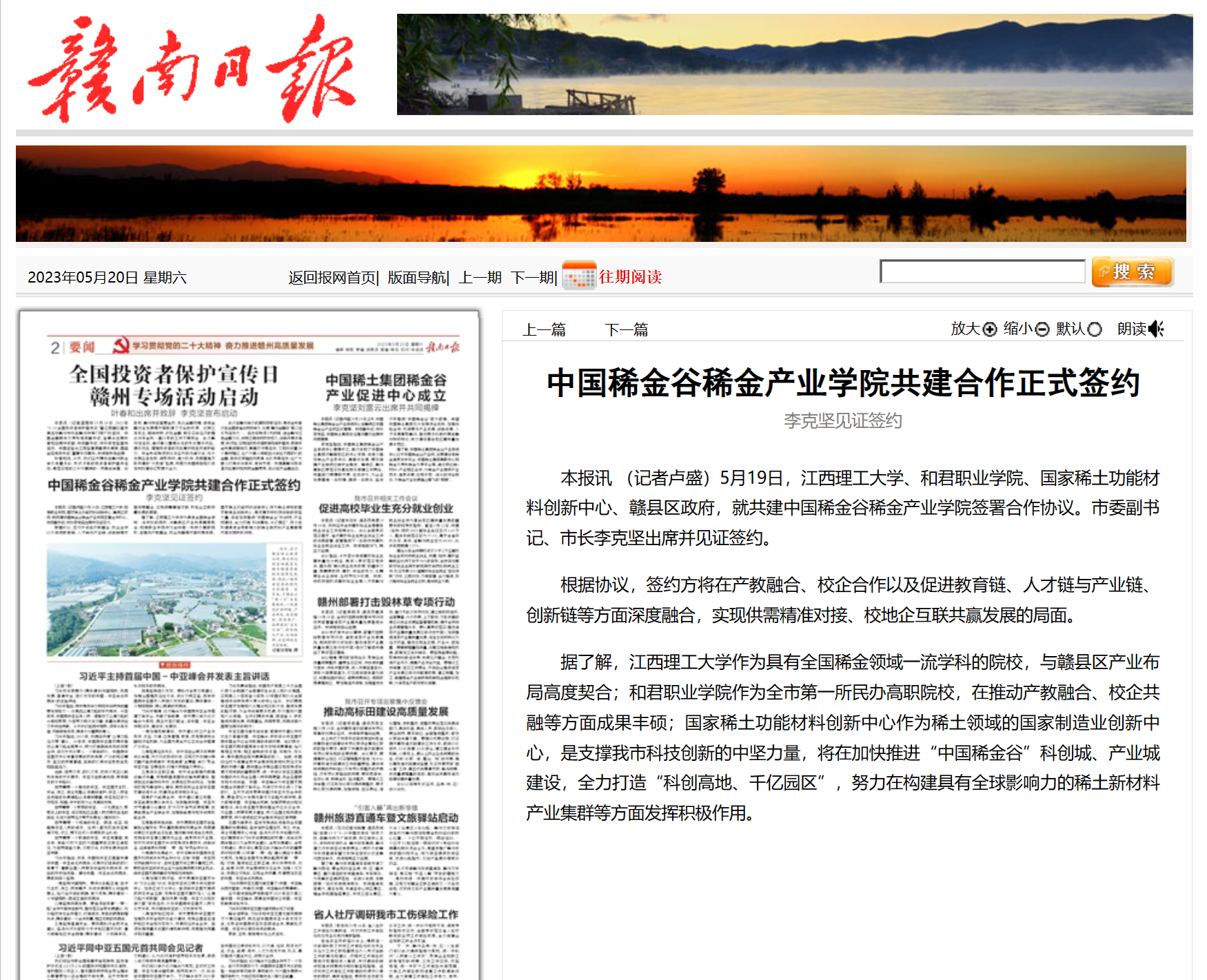 【赣南日报】中国稀金谷稀金产业学院共建合作协议正式签约