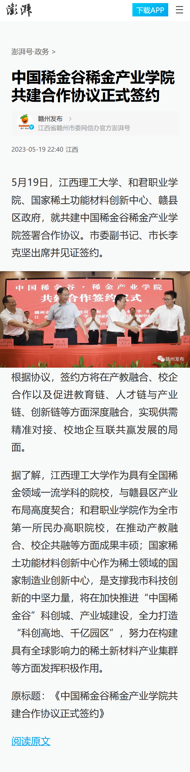 【澎湃】中国稀金谷稀金产业学院共建合作协议正式签约