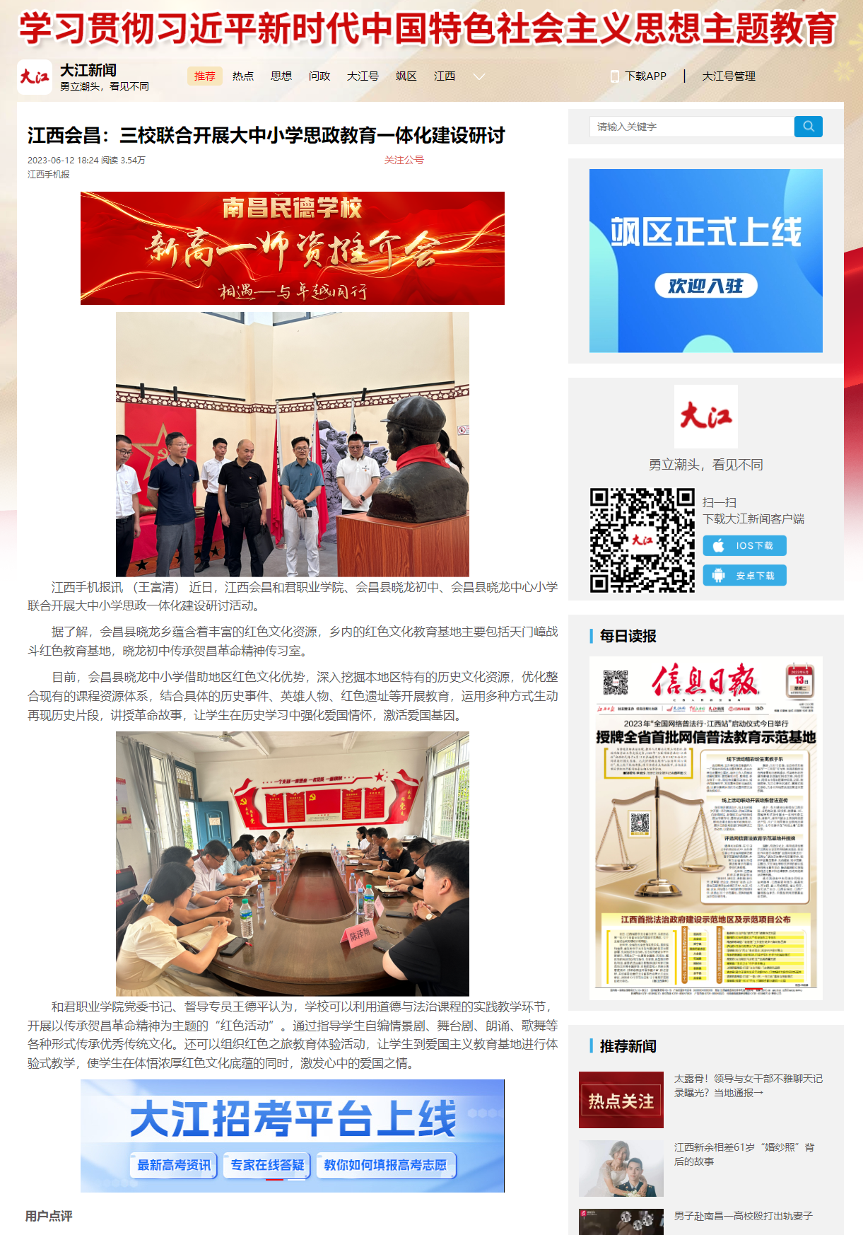 【大江新闻】江西会昌 三校联合开展大中小学思政教育一体化建设研讨