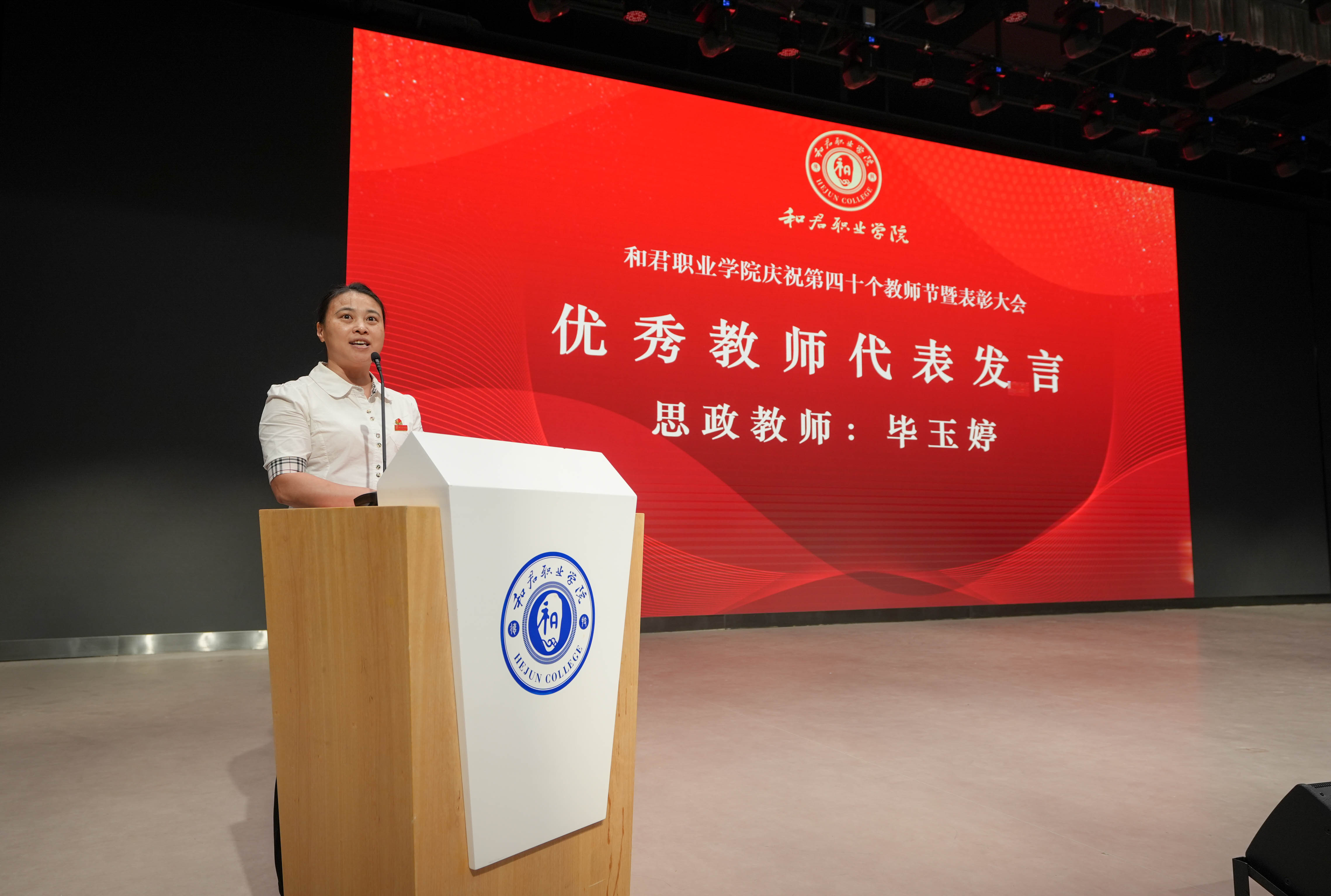 优秀教师代表毕玉婷回顾了自己二十年的教育实践,重申了立德树人的核心使命,表达了对教育事业的深厚情感。她强调了以学生为本🍱,激发潜能,促进学生全面发展的教育追求💂🏽♂️,并倡导教师终身学习,以适应教育的现代化需求,共同培育新时代的栋梁之才🐘。