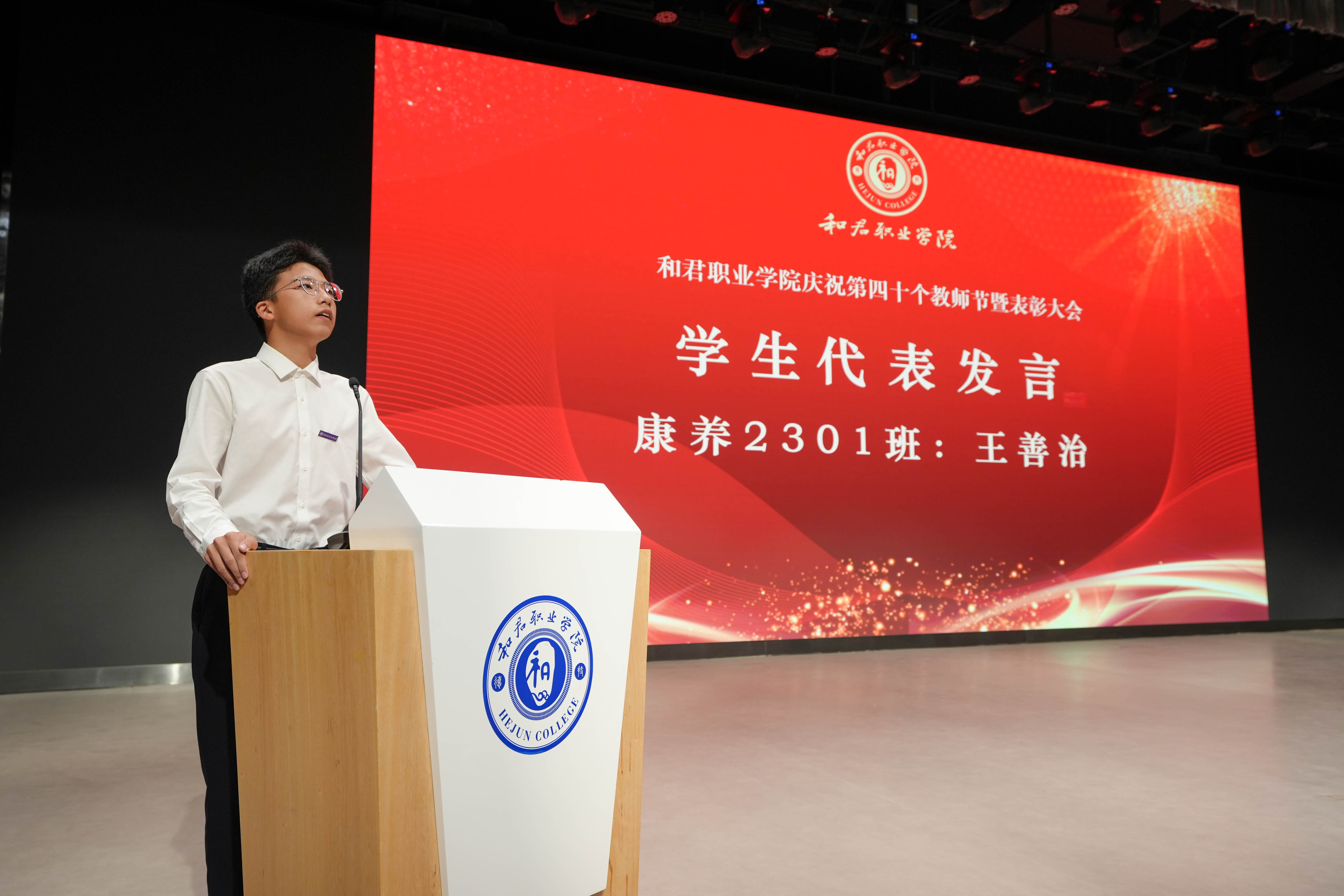 学生代表王善治向辛勤工作的老师们表达了崇高敬意和节日祝福。他分享了自己在学校的成长经历,感谢老师的精心培养。他呼吁同学们秉承校风,追求卓越,成为社会有用人才,以实际行动回报师恩。