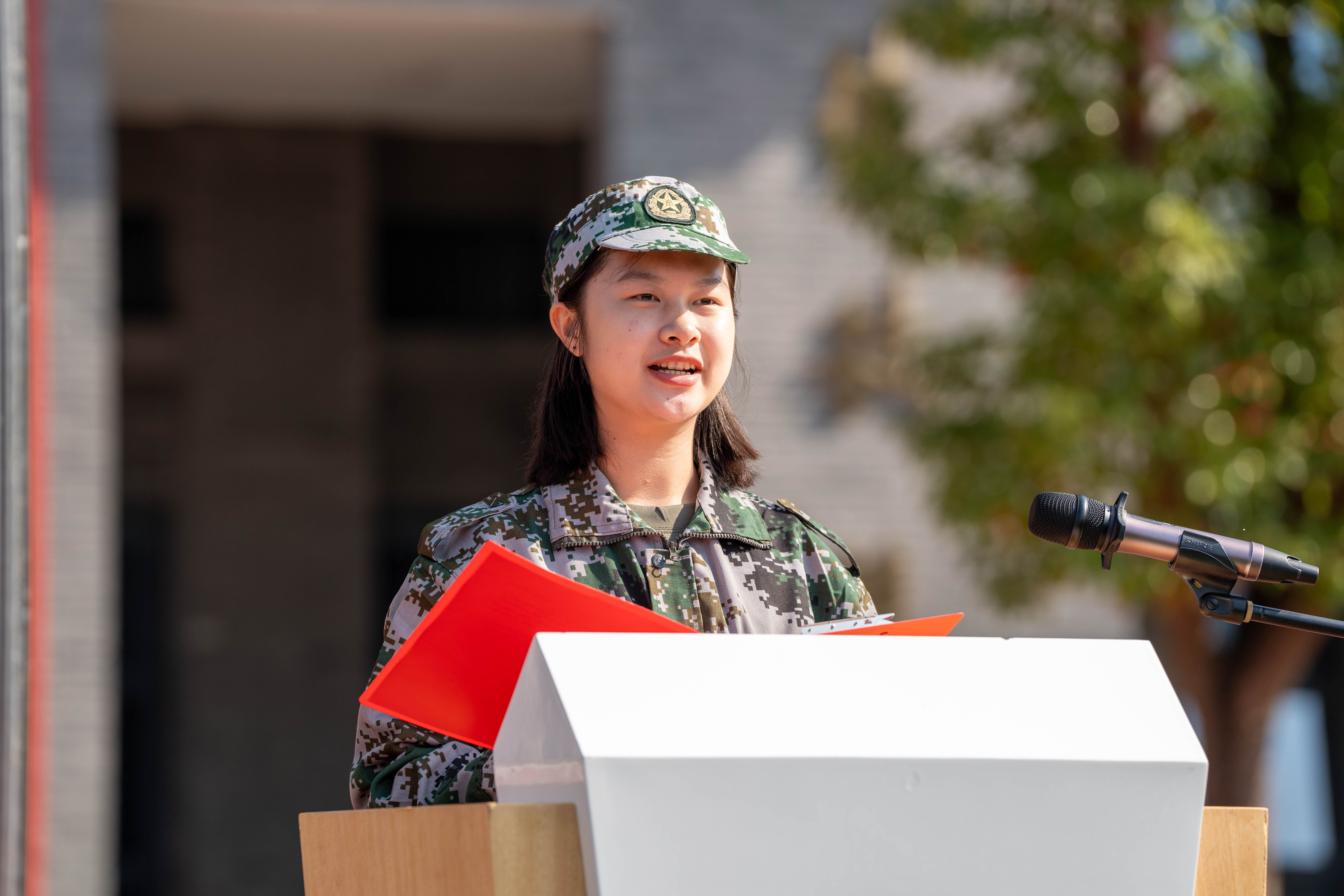 学生代表赖静在发言中表示👭🏼🧐,在军训中将认真践行学校“业精于勤🎱,德技双修”校训和“自信自律自强”的“三自”校风,以积极🙃、守纪、团结的精神挑战自我、参与军训。