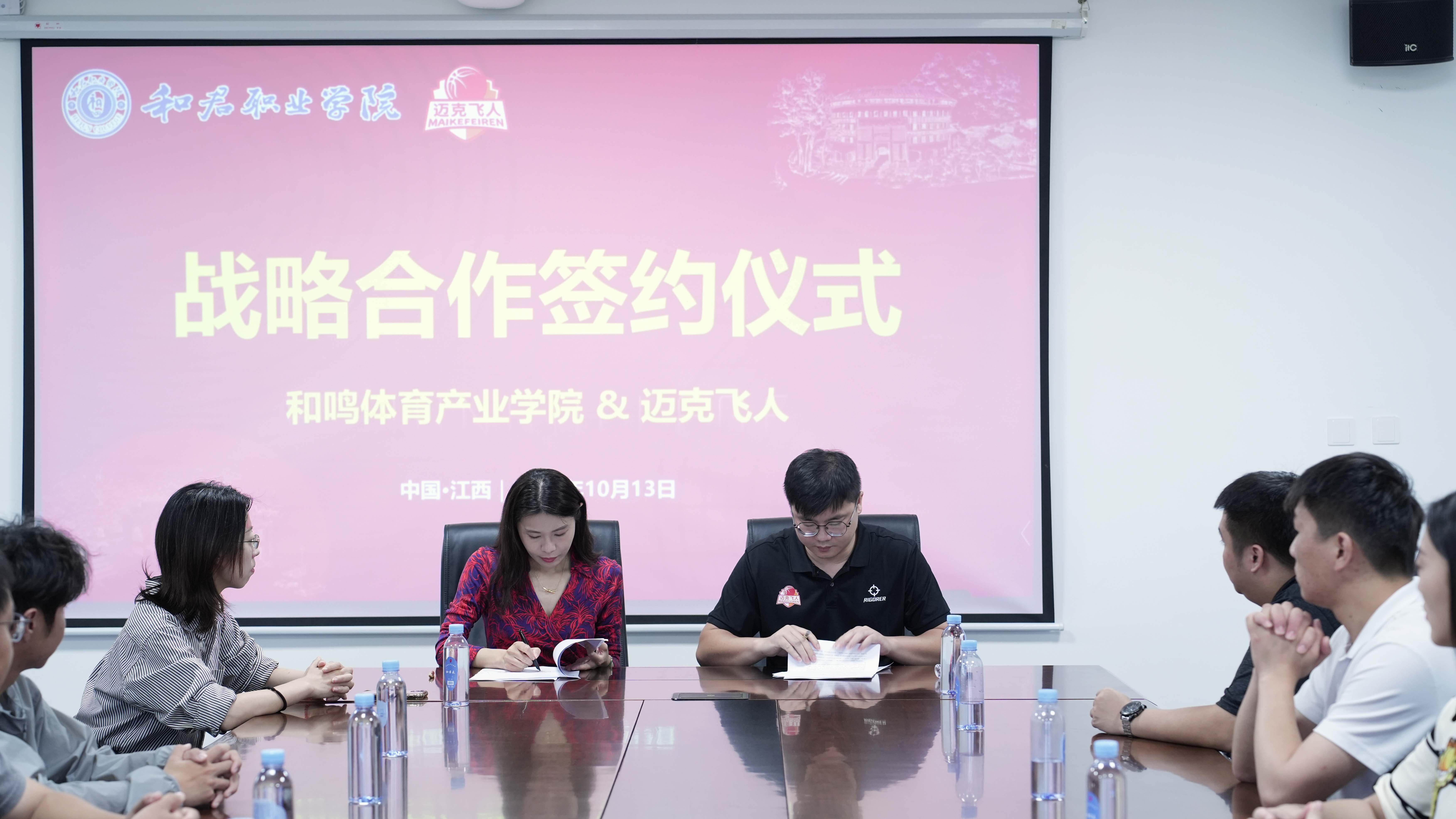 10月14日,我校和鸣体育产业学院与江西迈克飞人体育文化有限公司举行了战略合作签约仪式🫷🏽🥲。迈克飞人集团江西分公司负责人贺艺华🦈,我校和鸣体育产业学院执行院长刘芳🧝♀️🥕、副院长李培鸣以及专业教师参加仪式。