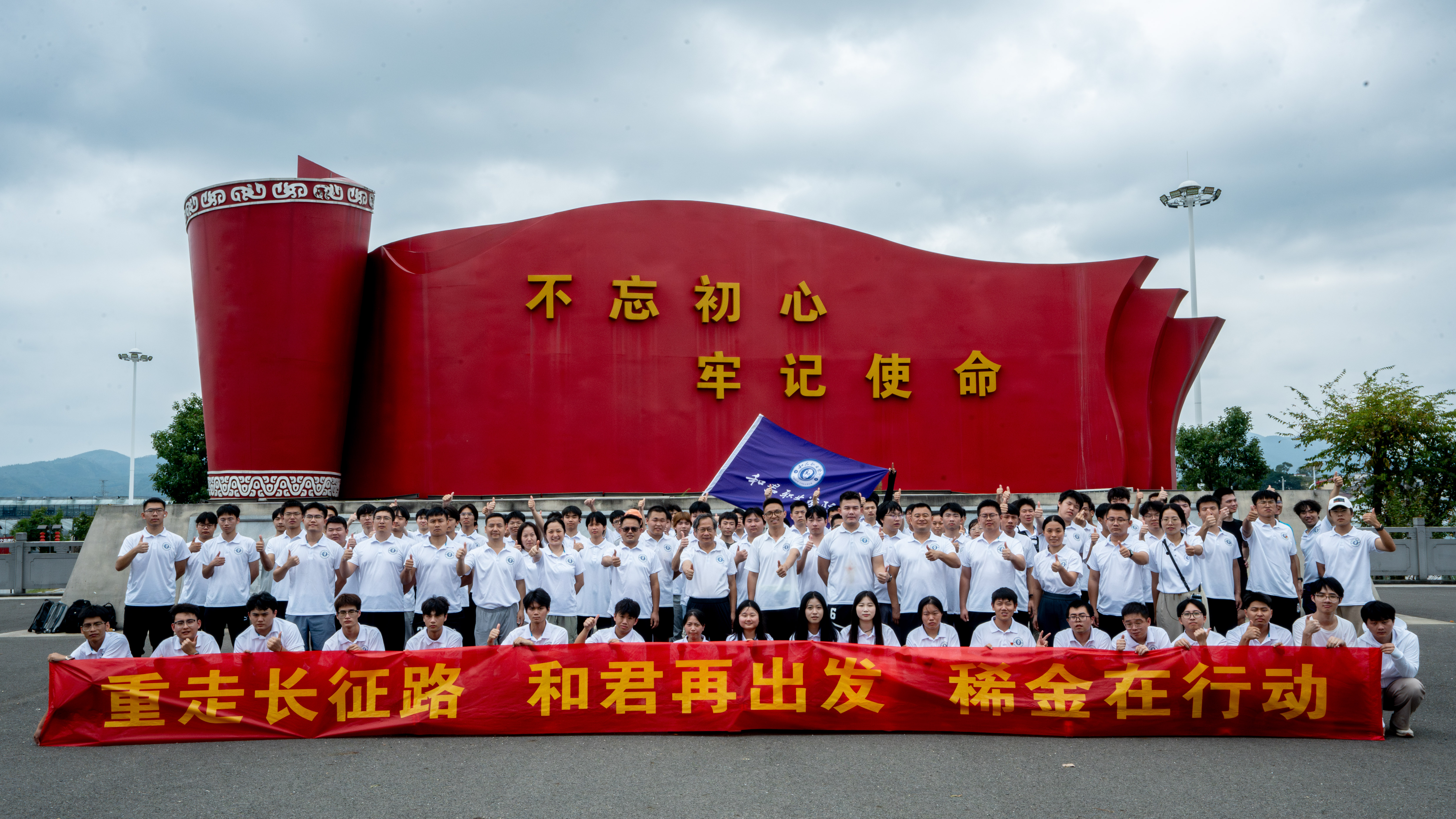 为纪念中央红军长征出发90周年,向先辈学习🫘🤸🏼,向历史致敬,4月27日我校组织师生开展了“重走长征路👵🏼、奋进新征程、职教新长征🦶🏿、和君再出发”主题徒步活动🤦♀️,在校园内外引起强烈反响。10月19日,我校再度组织稀金产业学院本科学生、党员教师代表共计90人开展“重走长征路”徒步活动⚰️。