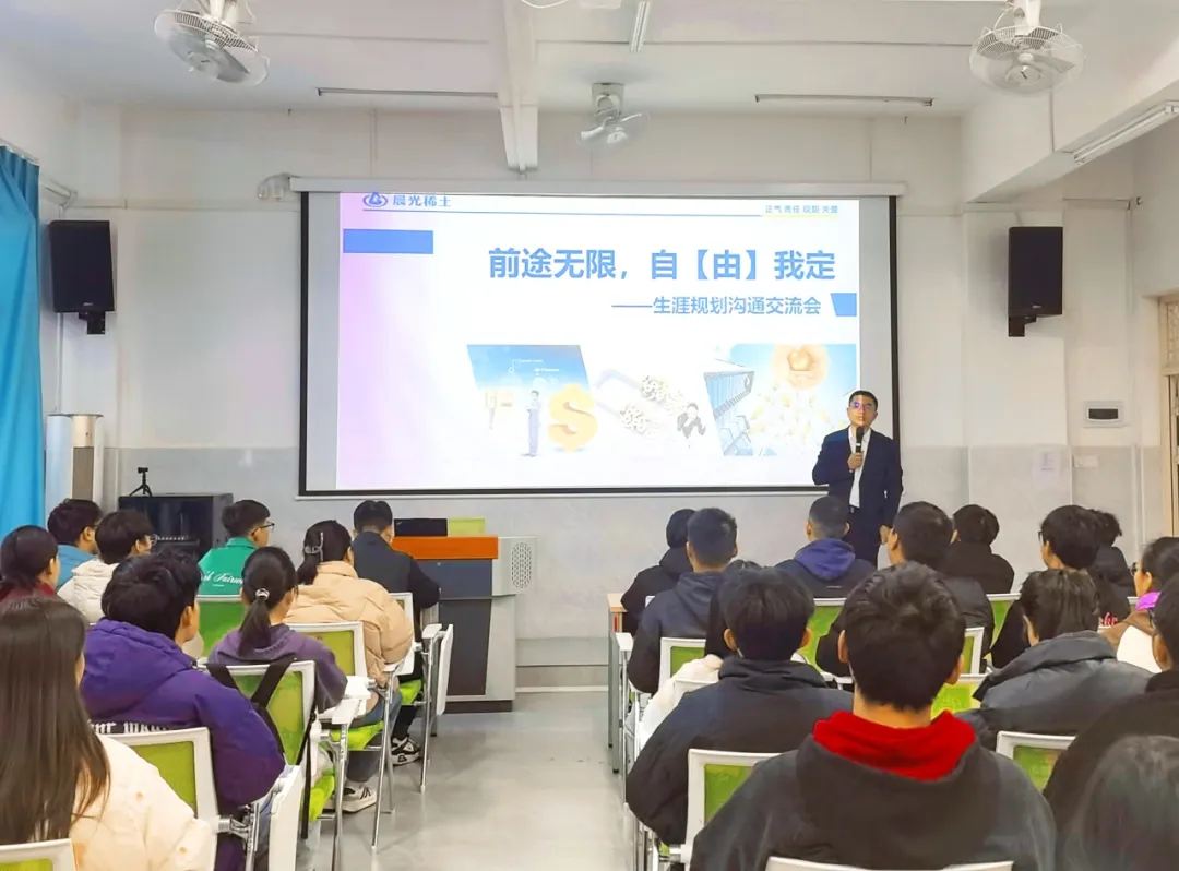 为帮助学生正确认识职业生涯与职业发展⛎,增强自我认知与职业规划能力,明确就业方向👨🦼👧🏼,12月10日🚶🏻,我校稀金产业学院邀请赣州晨光稀土再生资源事业部人资经理林桐禄为2023级全体学生举办了一场以 “前途无限 自‘由’我定” 为题的职业生涯规划专题讲座🛌🏿🧎♀️➡️。