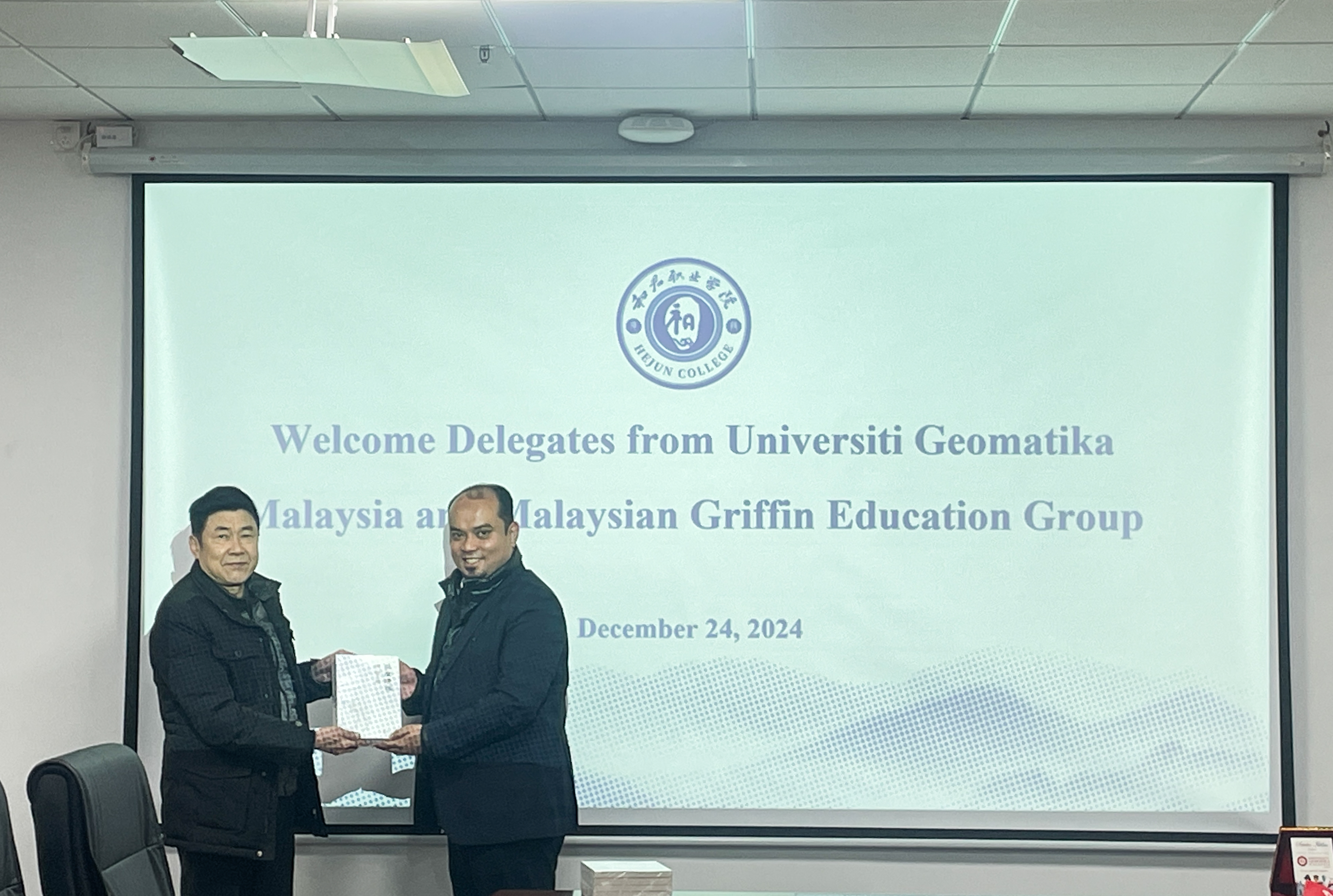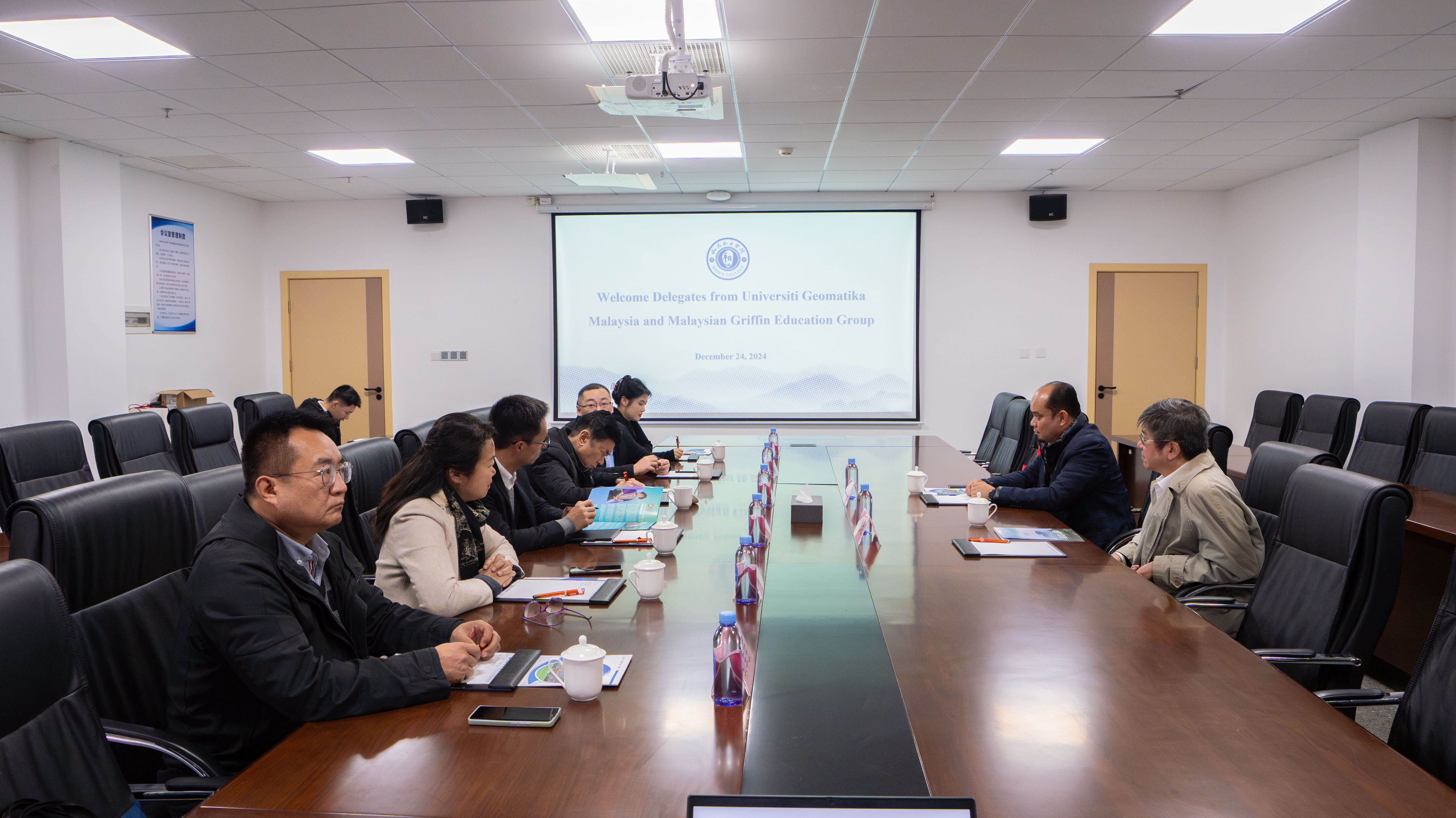 12月24日,马来西亚测绘大学(Universiti Teknologi Malaysia)副校长Mazrin教授和马来西亚格里芬教育集团(Malaysian Griffin Education Group)执行董事林思明访问我校,理事长李兴💛↪️、校长赖章盛🦶🏽、副校长丁立梅以及相关职能部门负责人会见来宾,并就双方合作办学进行座谈交流🥌。