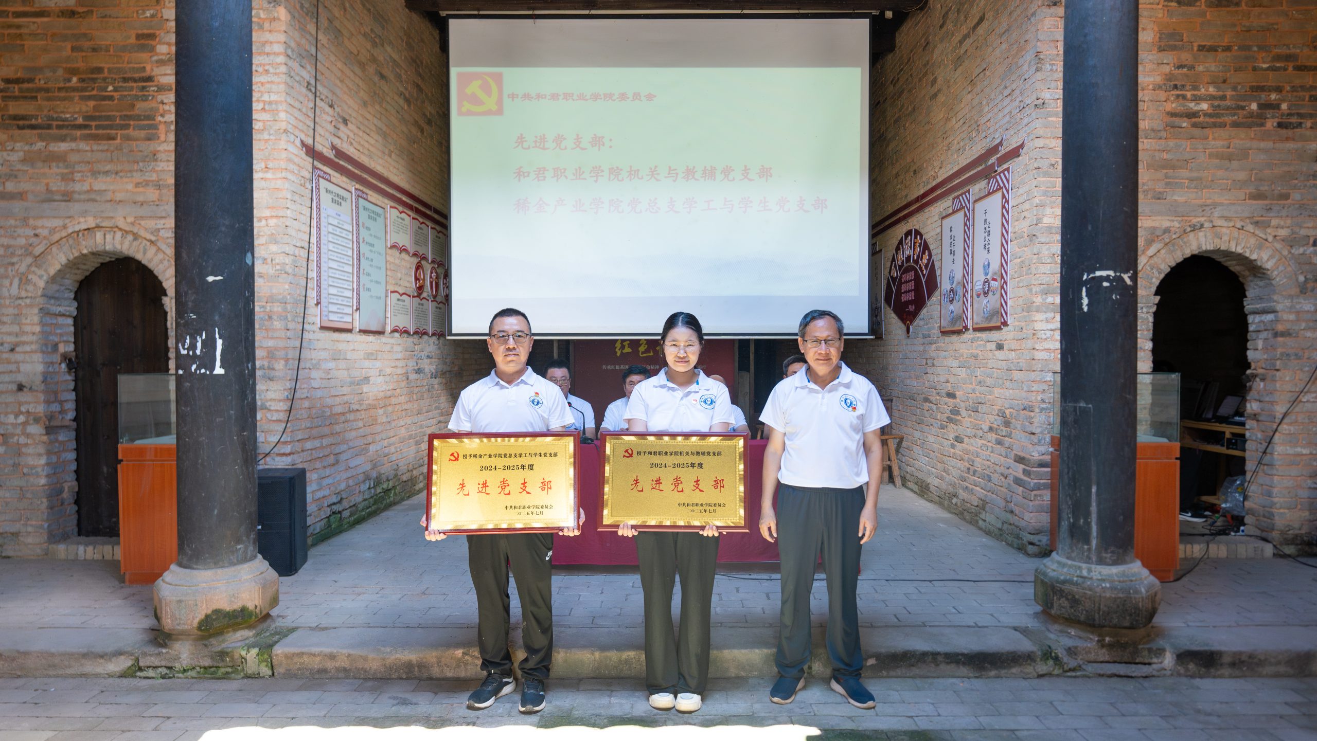 上午11时30分🪛,队伍抵达于都县黄麟乡井塘村。在红色旧址前,老党员重温入党誓词,新接收的预备党员庄严宣誓,铿锵誓言回荡在青山绿水间❤️‍🔥。中午时分,井塘中央财经委旧址内气氛庄重,”七一”表彰大会在这里举行。校党委委员韩晓军主持大会,党委副书记👩🏿‍⚖️、校长赖章盛宣读表彰通报,21名优秀共产党员、7名优秀党务工作者、2个先进党支部及10名党员教师联系学生宿舍先进工作者获表彰。党委副书记、理事长李兴为优秀党务工作者颁发荣誉证书🙅🏻‍♂️。优秀党员代表金群分享了获奖和徒步的感受,预备党员代表谢娇莉表态将以实际行动践行入党誓词🤸🏄🏿‍♀️。