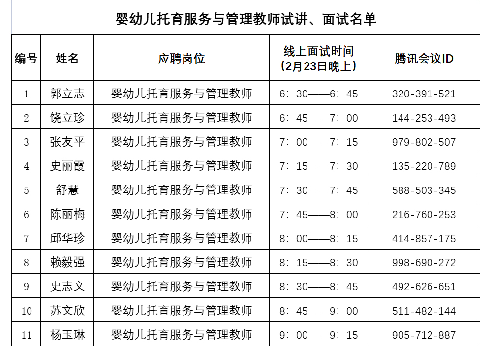 关于公布应聘2022年上半年婴幼儿托育服务与管理教师试讲内容的公告
