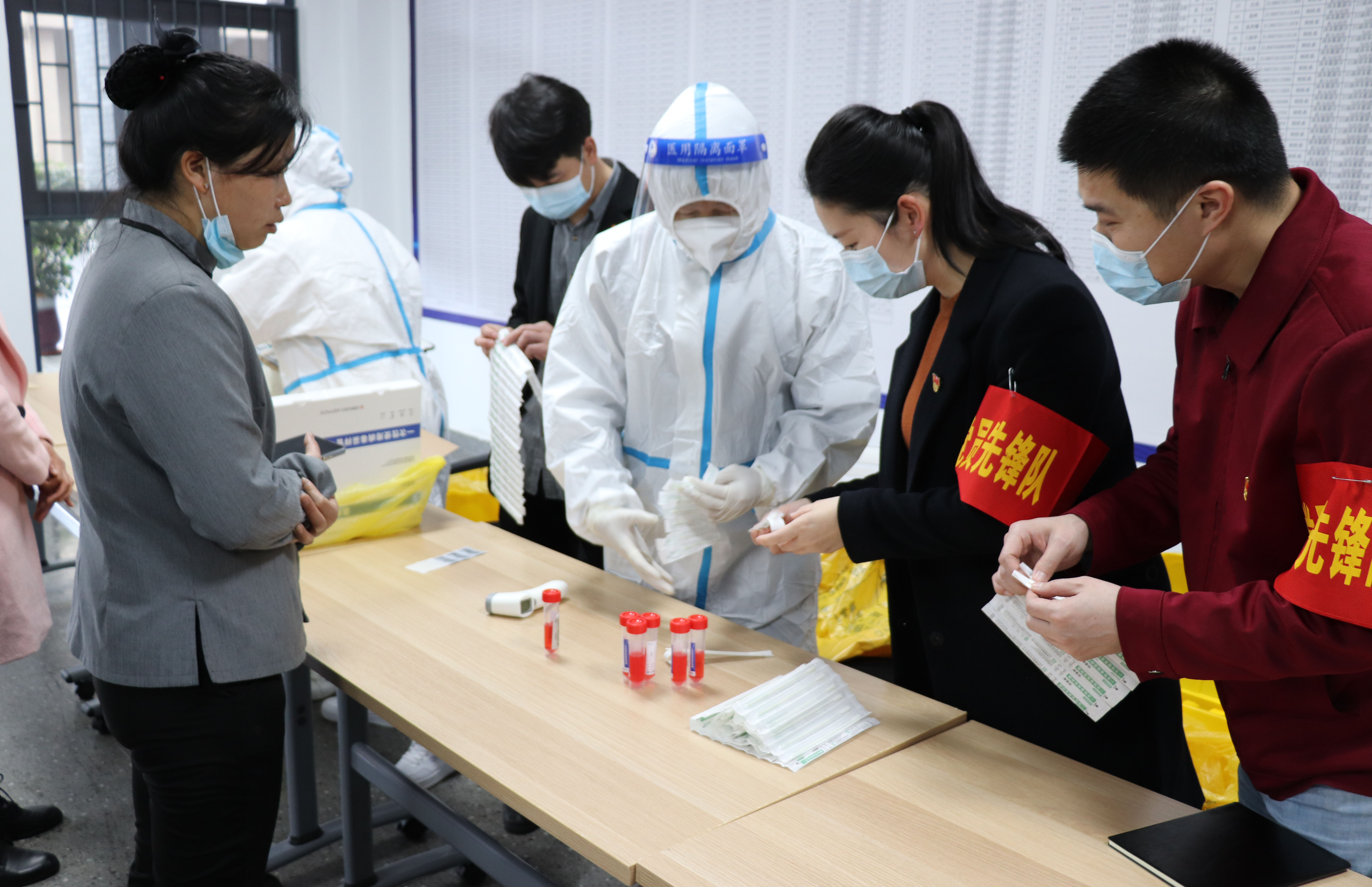 “请按照一米线依次有序排队。”、“这边只出不进,请在指定通道内通行。”……3月25日下午🚶♀️➡️👨🦯,彩神xl开展第二轮全员核酸检测,学校党员教职工主动亮身份、作表率,组建“党员先锋队”🌂,充分发挥基层党组织战斗堡垒作用和党员先锋模范作用🧖🏼♀️,引导师生员工有序排队检测💻,最大程度为广大师生提供服务🤹🏽♀️,推动核酸检测工作有序高效进行🌂。核酸检测现场,党员们分工明确🫱🏽,冲锋在先👱,有的维护秩序;有的为师生扫码测温;有的协助医护人员开展核酸检测;有的在门口引导人员疏散……党员们以实际行动让党旗在疫情防控的一线高高飘扬。