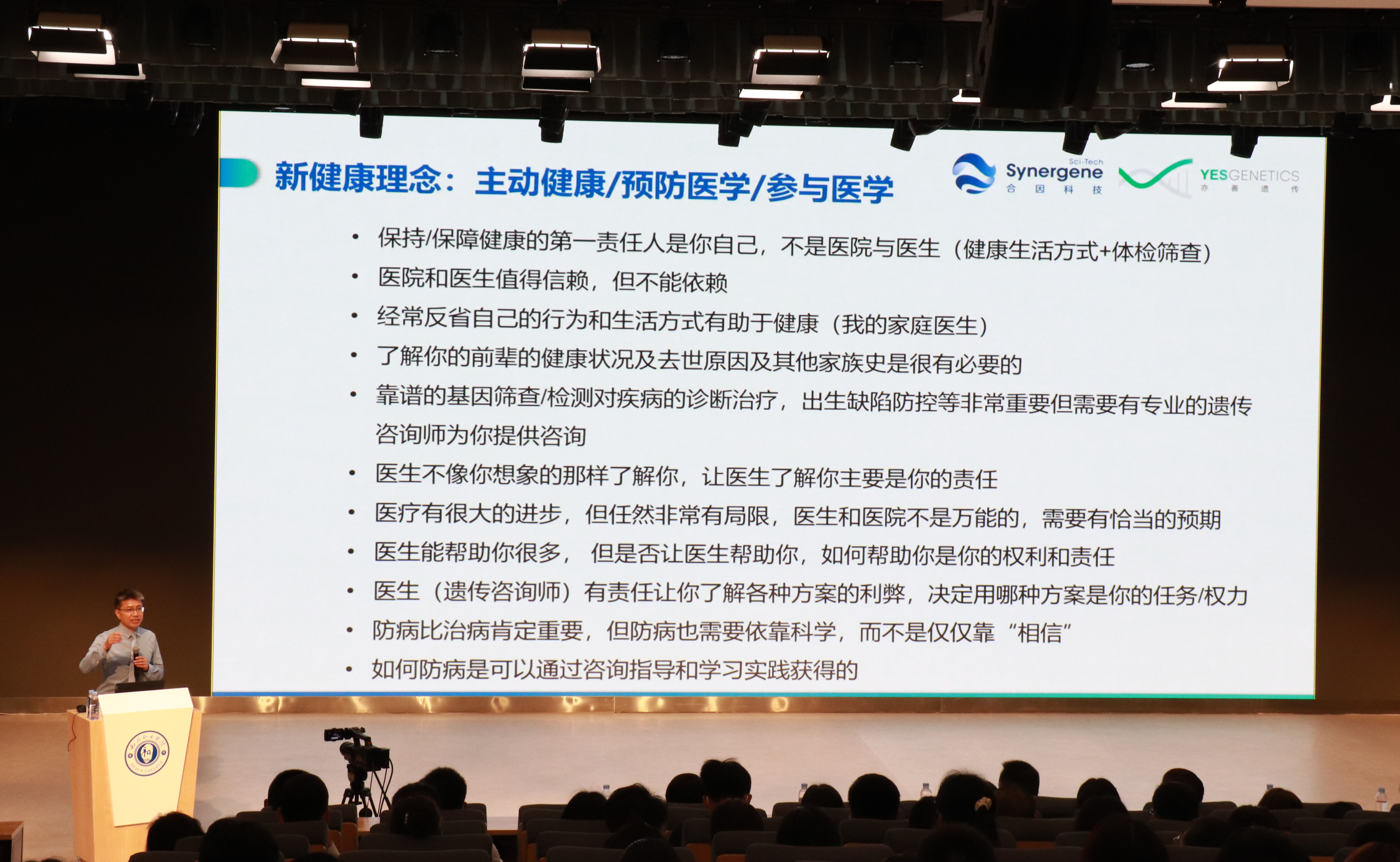 沈亦平教授围绕健康的定义、医学的实践、疾病的认识、新健康理念等四个方面🤲,从中医古籍《黄帝内经》到现代疾病数据分析实践出发✍️,谈影响寿命的因素、疾病的发展阶段与保健策略、癌症的风险因素、基因医学学科趋势,以古今中外的医学著作、研究数据为佐证,阐述基因与疾病的关系⏱🧑🏽🦱,让师生员工了解疾病的产生与演变过程,能有针对性地做好疾病的预防🙏。
