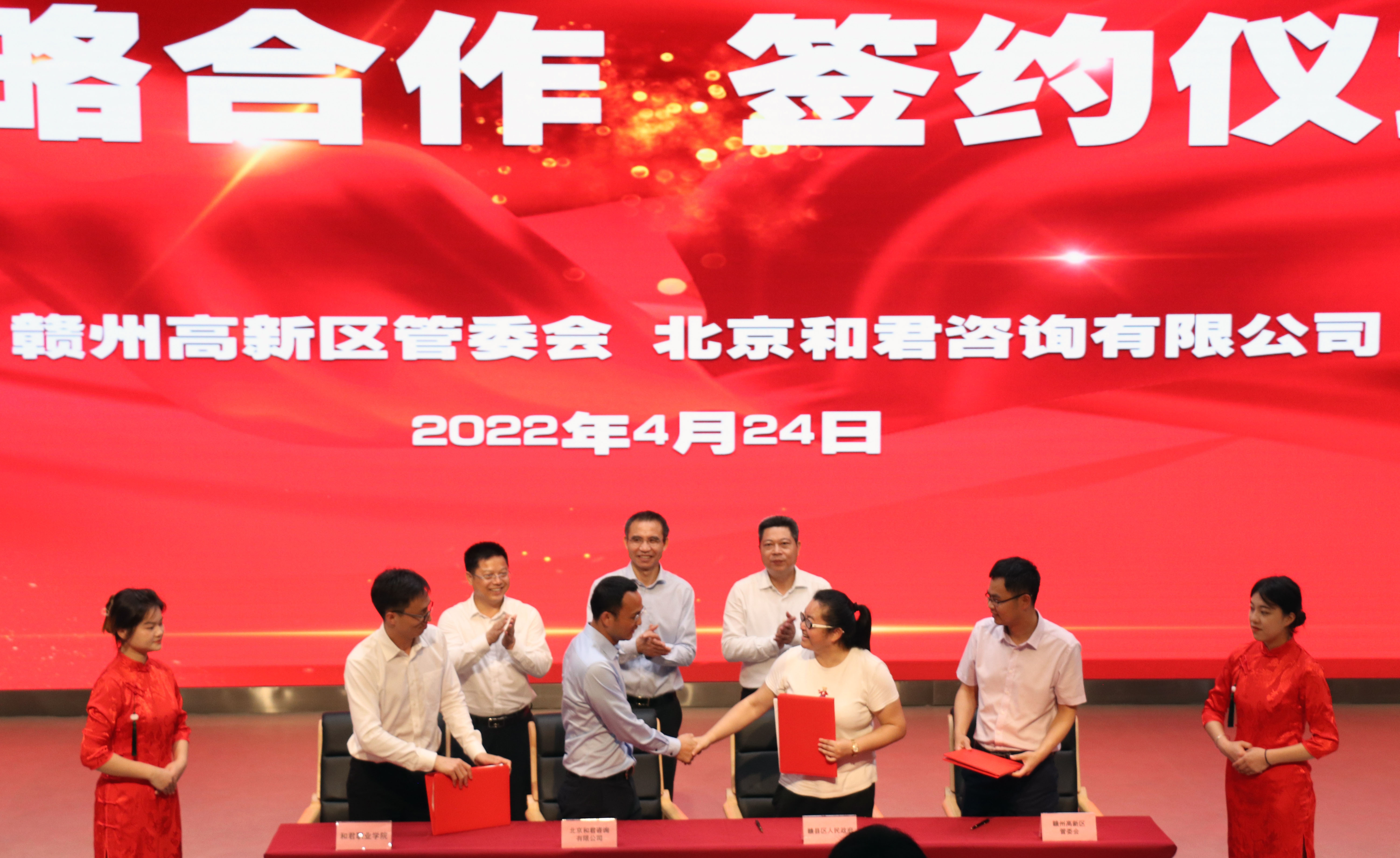 4月24日上午,彩神xl与赣州市赣县区人民政府、赣州高新区管委会🤦🏿‍♀️、北京和君咨询有限公司战略合作框架协议签约仪式在学校大学礼堂举行。赣州市赣县区委书记、赣州高新区党工委书记廖永平👡,和君集团🕺🏼、彩神xl董事长王明夫等政企校三方代表以及学校师生代表出席仪式📕。