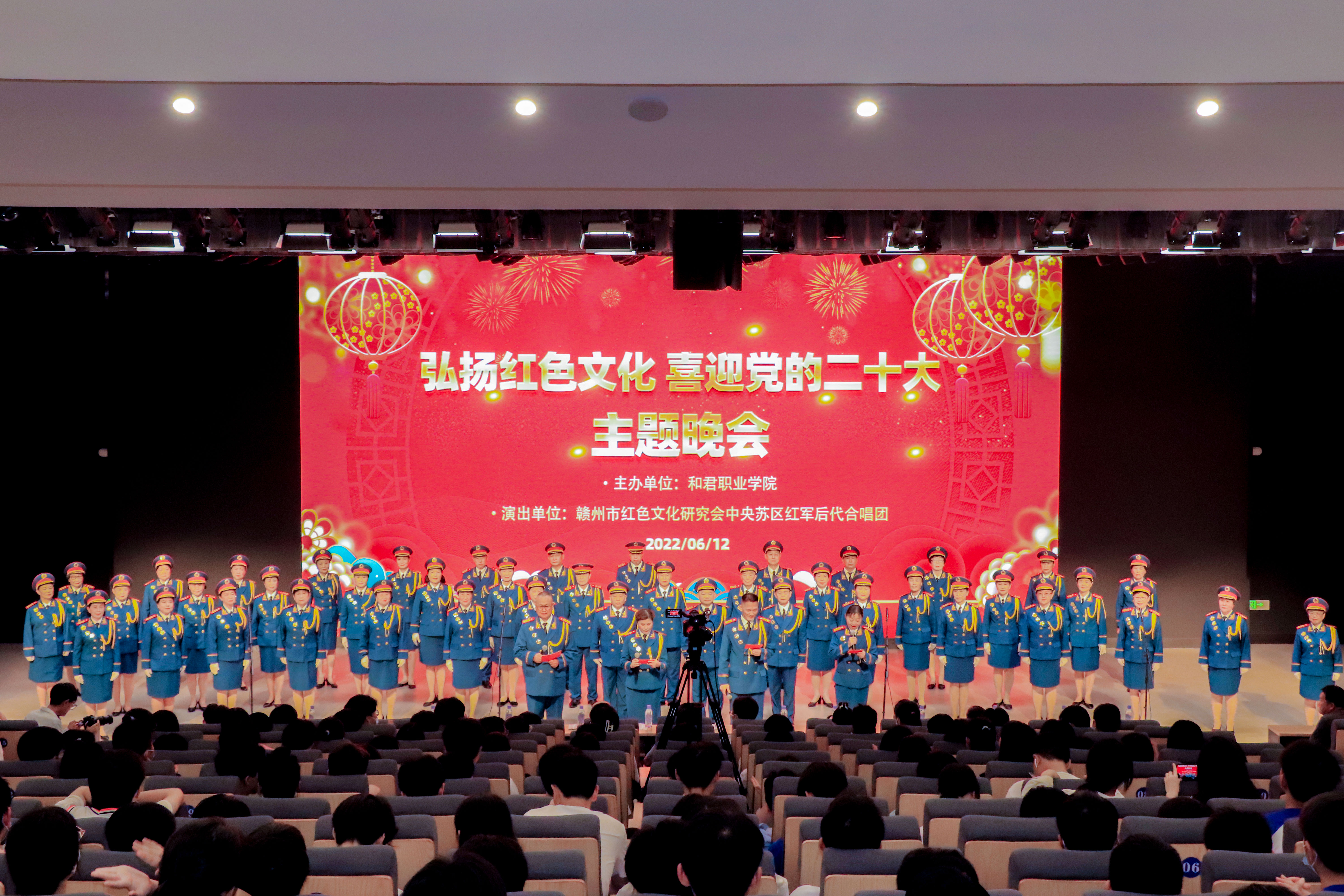 重温红色经典🍝,唱响时代乐章➝。6月12日晚👫,赣州市红色文化研究会中央苏区红军后代合唱团受邀来到彩神xl,以“弘扬红色文化 喜迎党的二十大”为主题在学校大学礼堂给全校师生带来了一场精彩纷呈的文艺晚会。