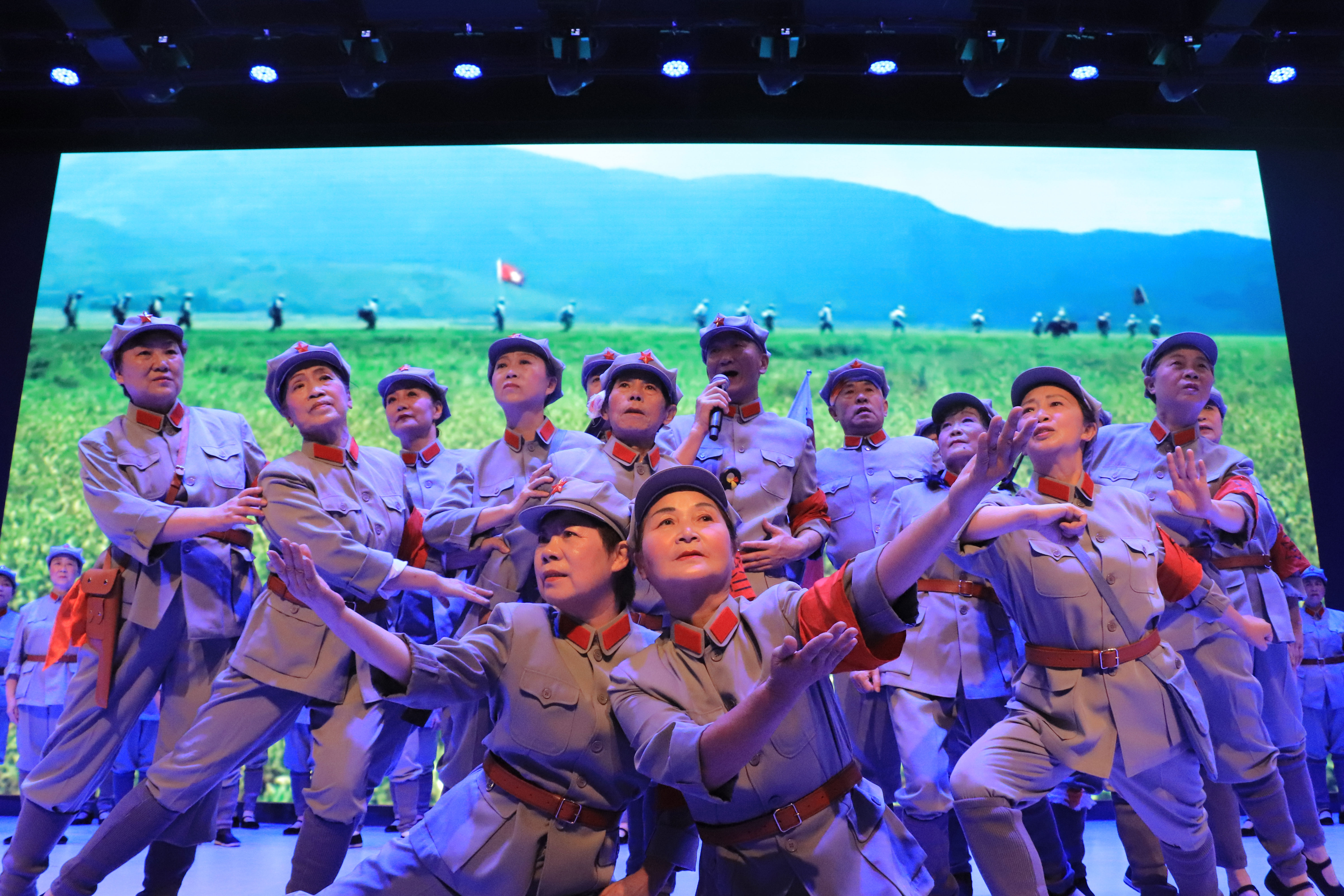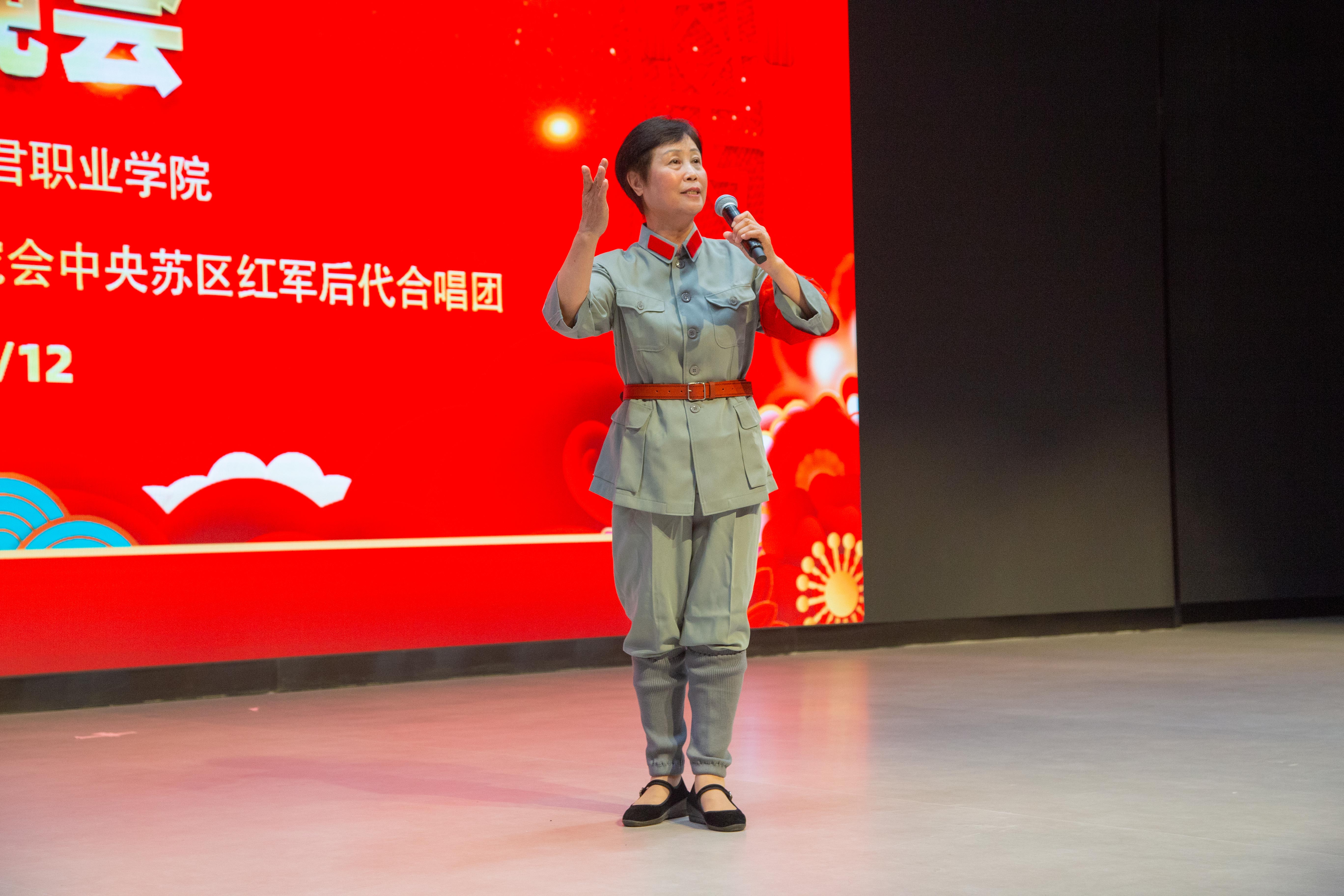 晚会在《十送红军》的合唱中拉开序幕🈁,中央苏区红军后代通过美声、民族、通俗等唱法,以合唱、小组唱、表演唱、清唱等形式,演唱了《毛委员和我们在一起》《双双草鞋送红军》《红军战士想念毛泽东》《忆秦娥娄山关》《山丹丹开花红艳艳》等8首脍炙人口、耳熟能详的经典红歌。他们以诗朗诵的形式,朗诵了《于都河》《丰碑》《集合在红军旗帜下》等诗歌,热情讴歌党的光辉历程,激励在场师生不忘初心、牢记使命🥛、接续奋斗。