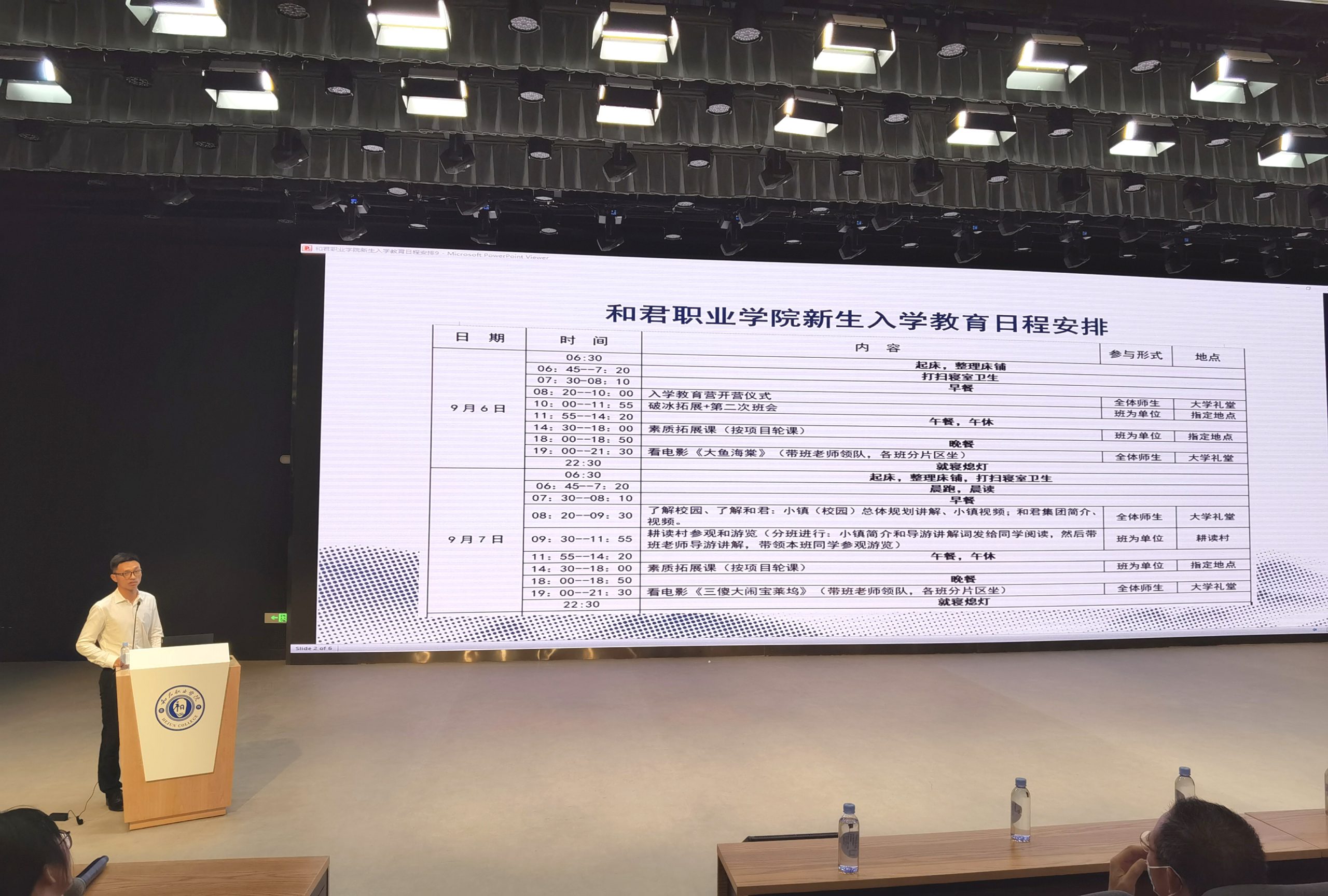 9月6日上午,彩神xl首届新生入学教育营开营仪式在学校综合楼七楼大礼堂举行🤐。和君集团全体董事会成员、学校全体校领导、教职员工、素质拓展教练及2021级首届新生出席仪式。