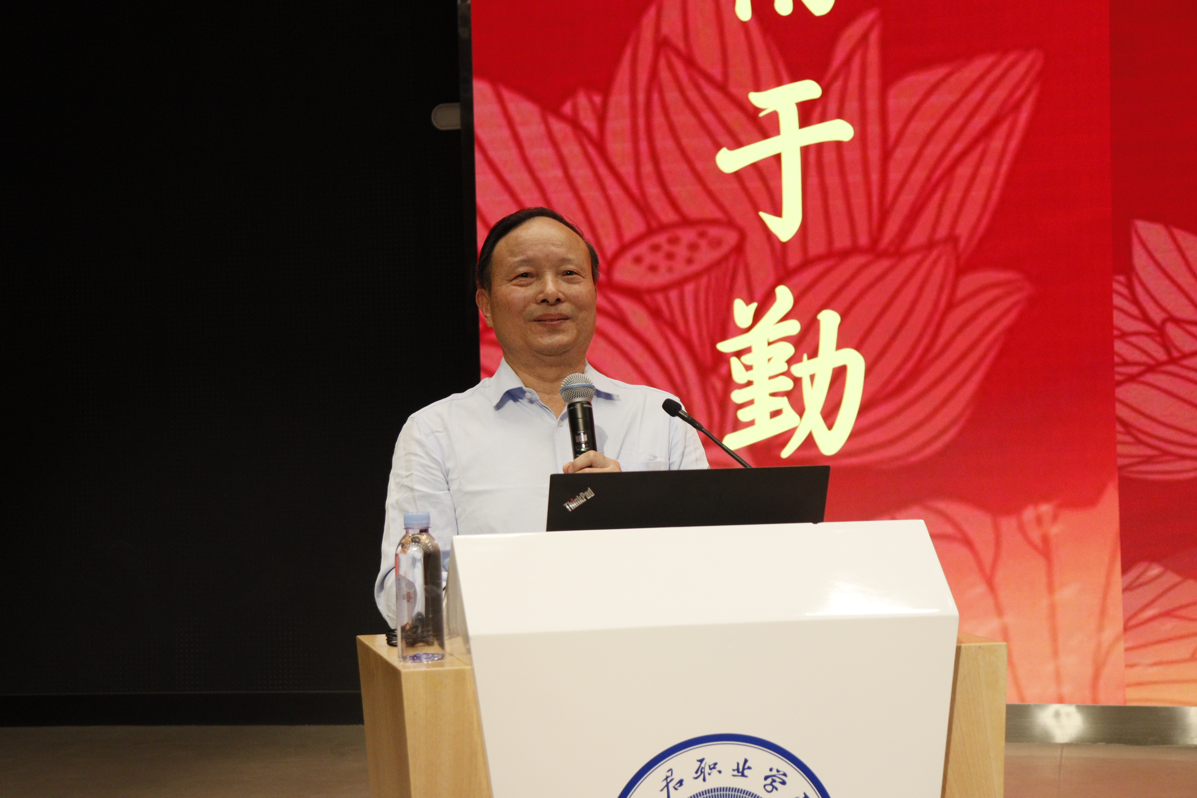 教师代表廖茂俍教授发言中寄语新同学,在大学中学会认知、学会做人、学会做实,明确目标,加倍努力🎏,达成站起来能说,坐下来能写🧚🏿♀️,走出去能干的初心。