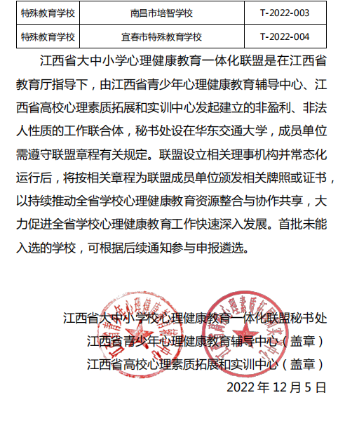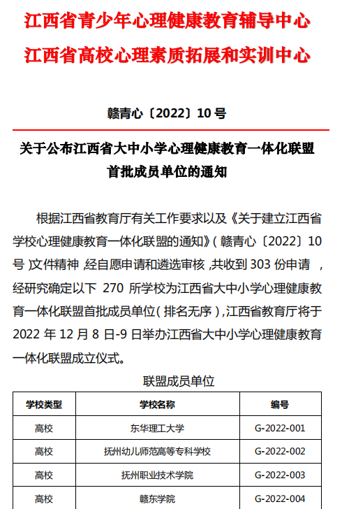 喜报!我校入选江西省大中小学心理健康教育一体化联盟首批成员单位