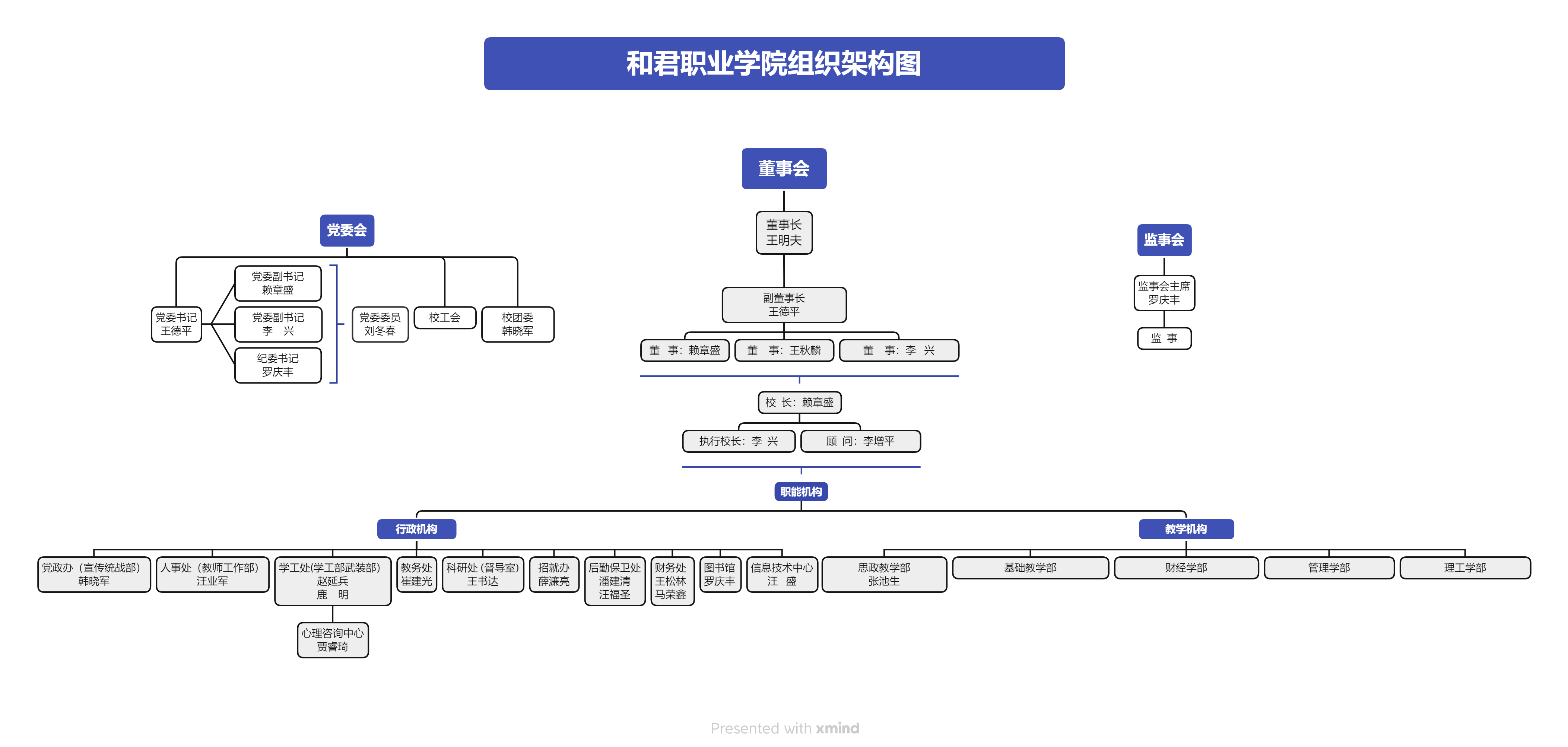 学校通过近两年的运行🅿️,党政工团构架合理,形成了涵盖10个行政部门较为完整的管理体系。