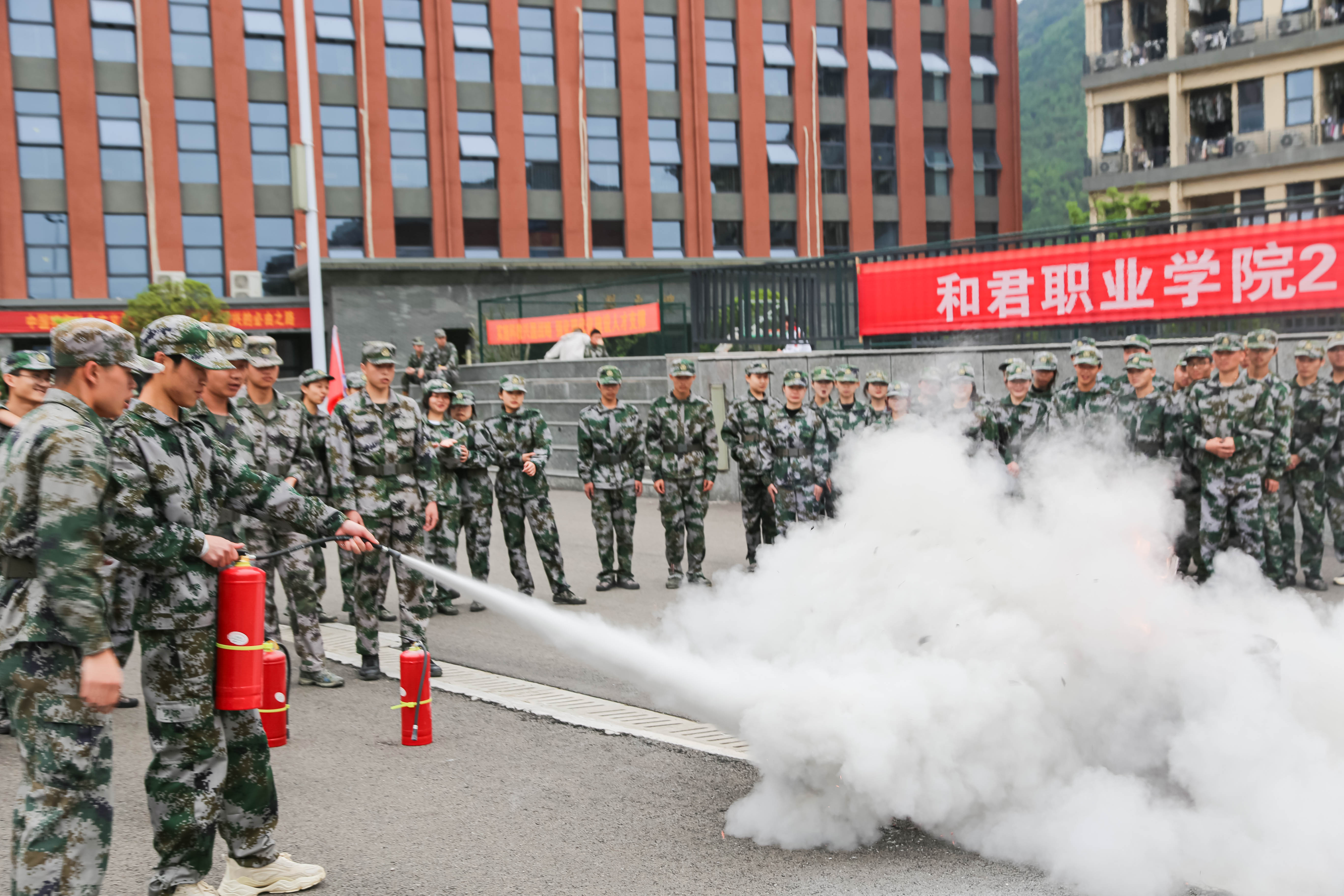 消防走进国防教育丨参训学生“实战”灭火