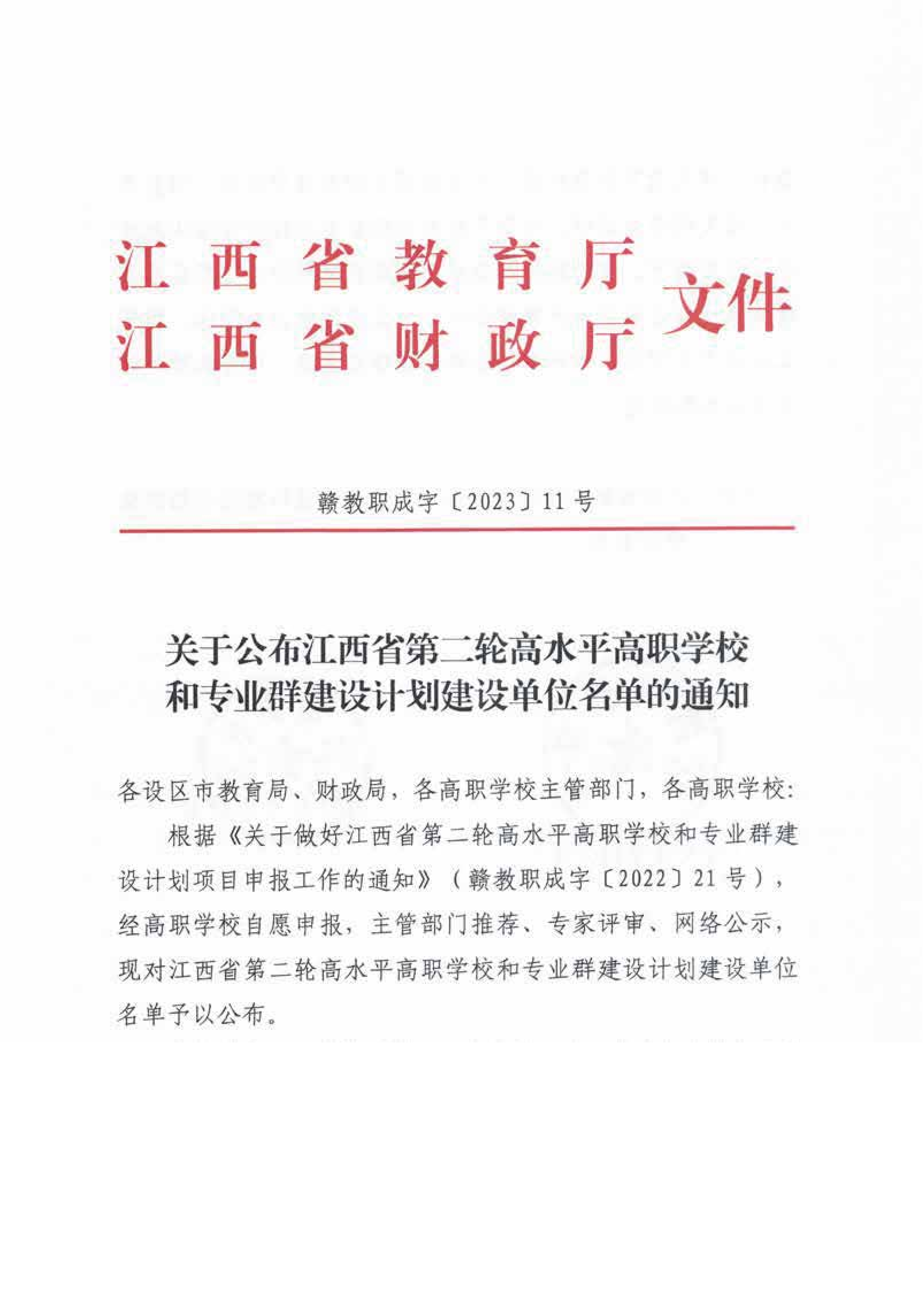 喜讯 | 我校正式入选江西省高水平专业群建设单位