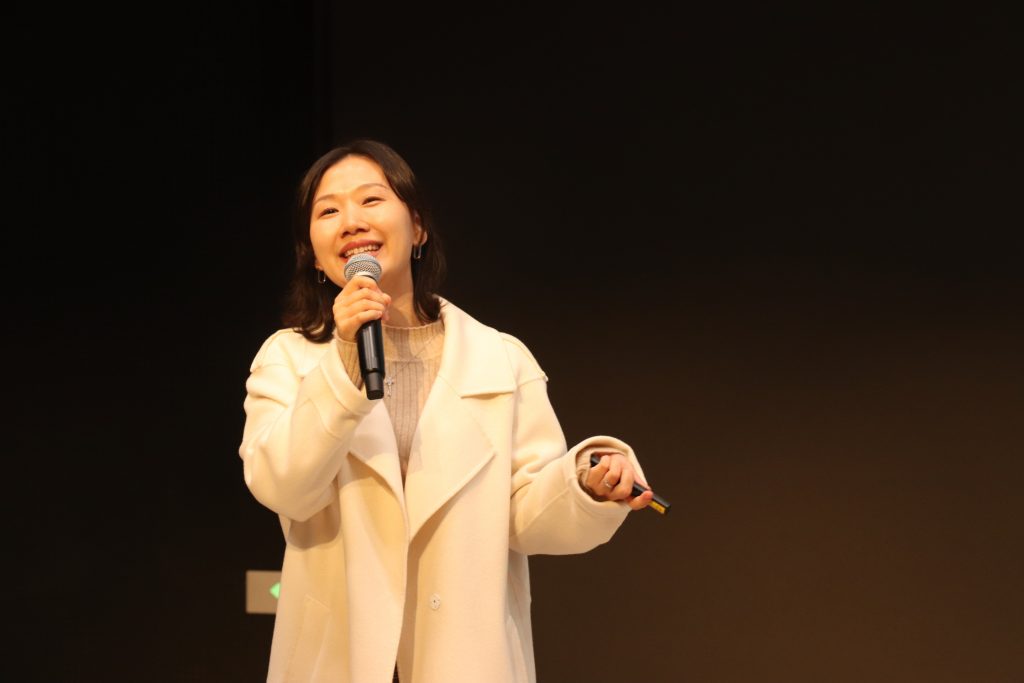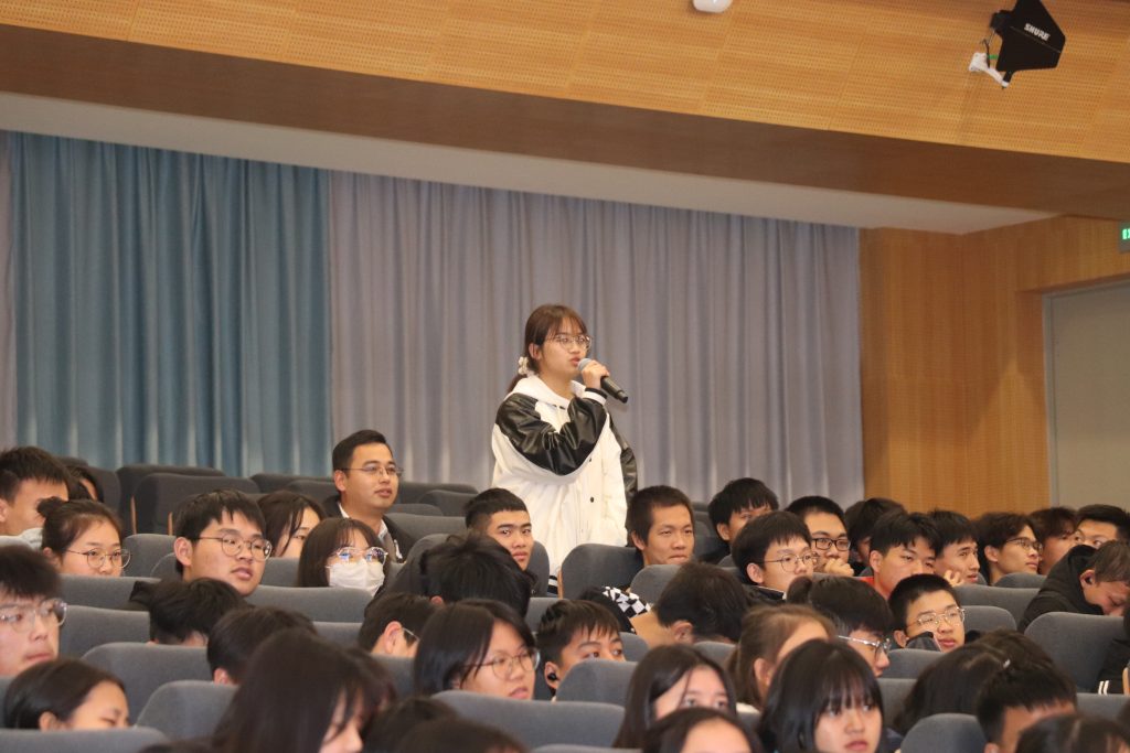 讲座上,张杏围绕中国与欧美国家在饮食、文化、时间管理、生活方式、人际关系以及对于风险把控和权威观点认知的各种不同与在场师生进行互动交流,大家积极踊跃地参与互动,现场学习讨论的氛围非常浓厚。她以零基础学习英语的企业家和老奶奶因为需要英语,开始学习英语,并取得很好效果的身边案例告诉在场学生,“人人都可以学好英语”。