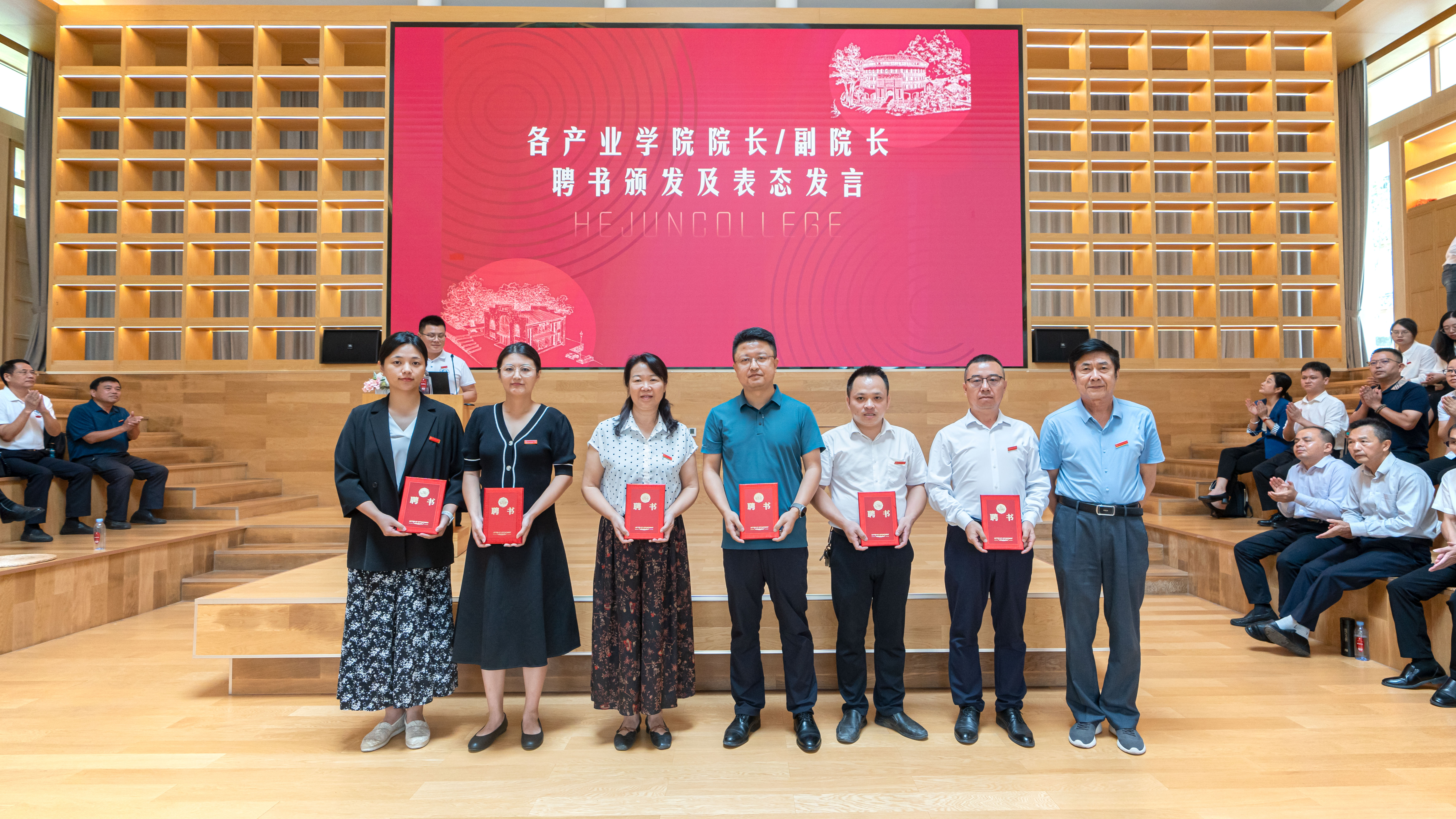 校长赖章盛为稀金产业学院💜、和声戏剧技术学院🎹、和鸣体育产业学院等产业学院院长颁发了聘书。
