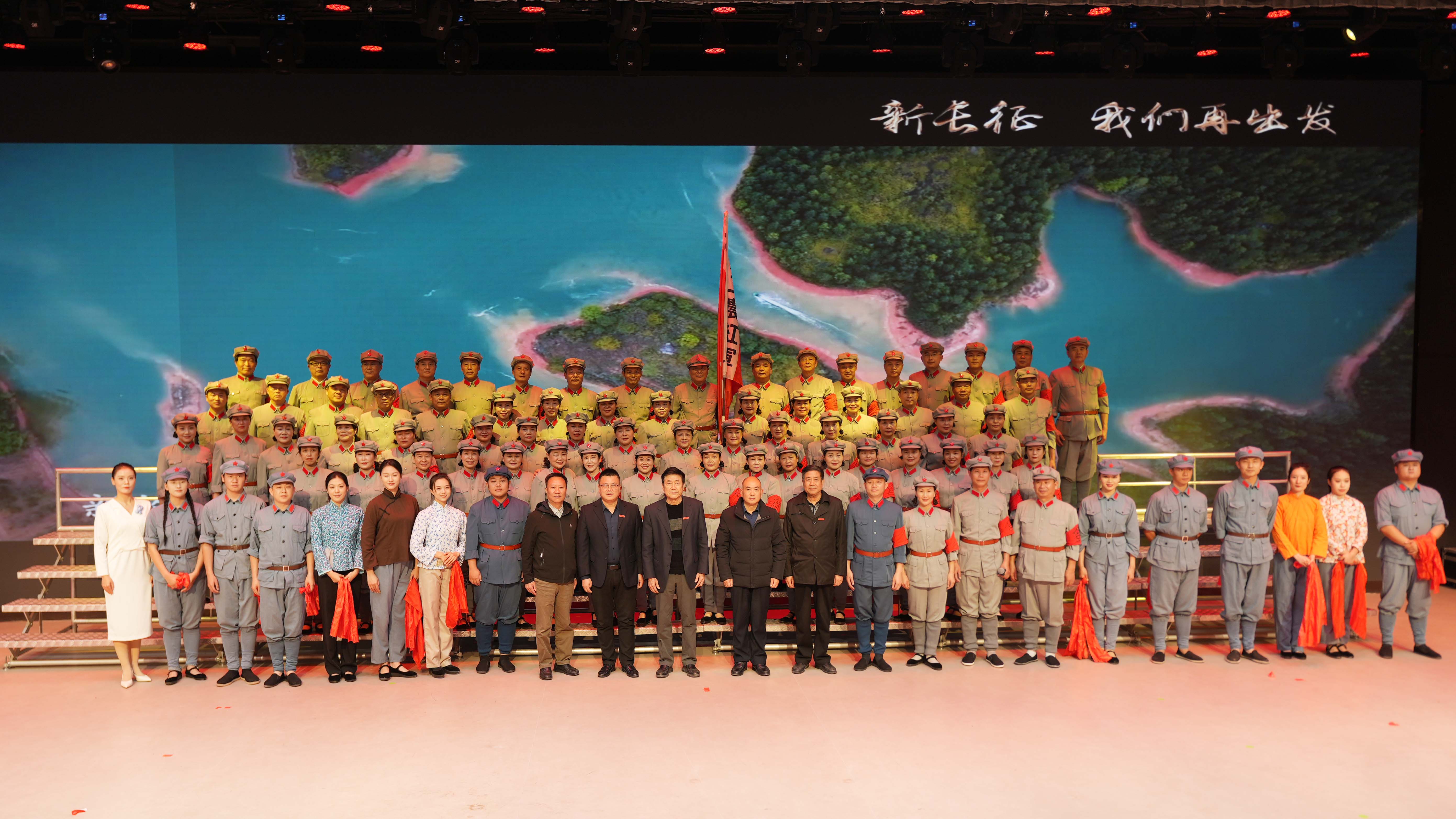 “红旗飘,军号响🧑🏼🏫。子弟兵🙆🏿,别故乡……”铿锵有力的歌声从大学礼堂传出💁🏽,满腔炽热的爱国情怀在场内蓬勃涌动🧒,将在场观众代入那段激情燃烧的长征旅程。