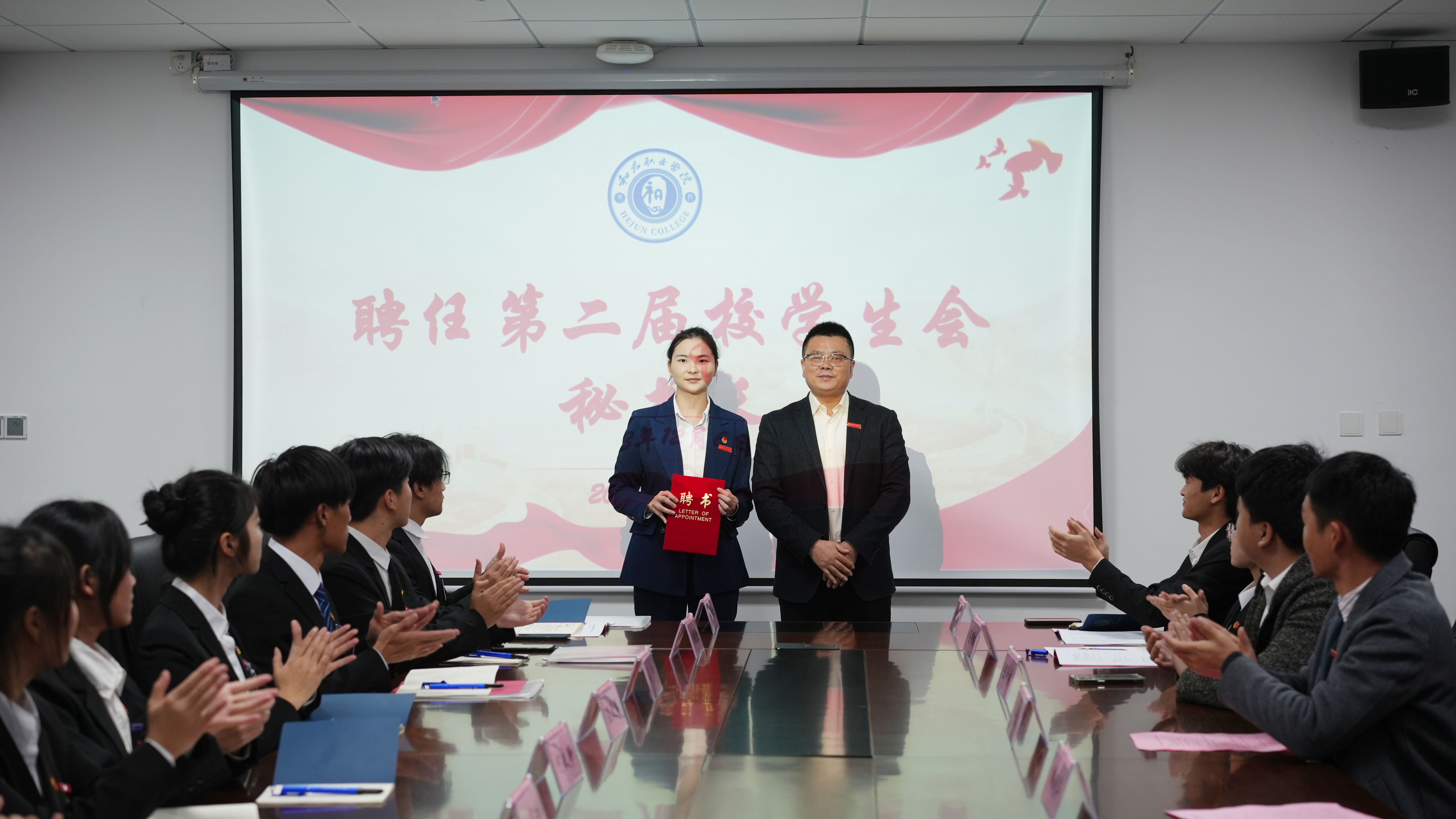 大会闭幕后🫳🏽,召开了彩神xl第二届学生会委员会第一次全体会议。会议选举并产生了第二届校学生会主席团成员,并聘任曾海秀老师为第二届校学生会秘书长🧑🏼🏫。