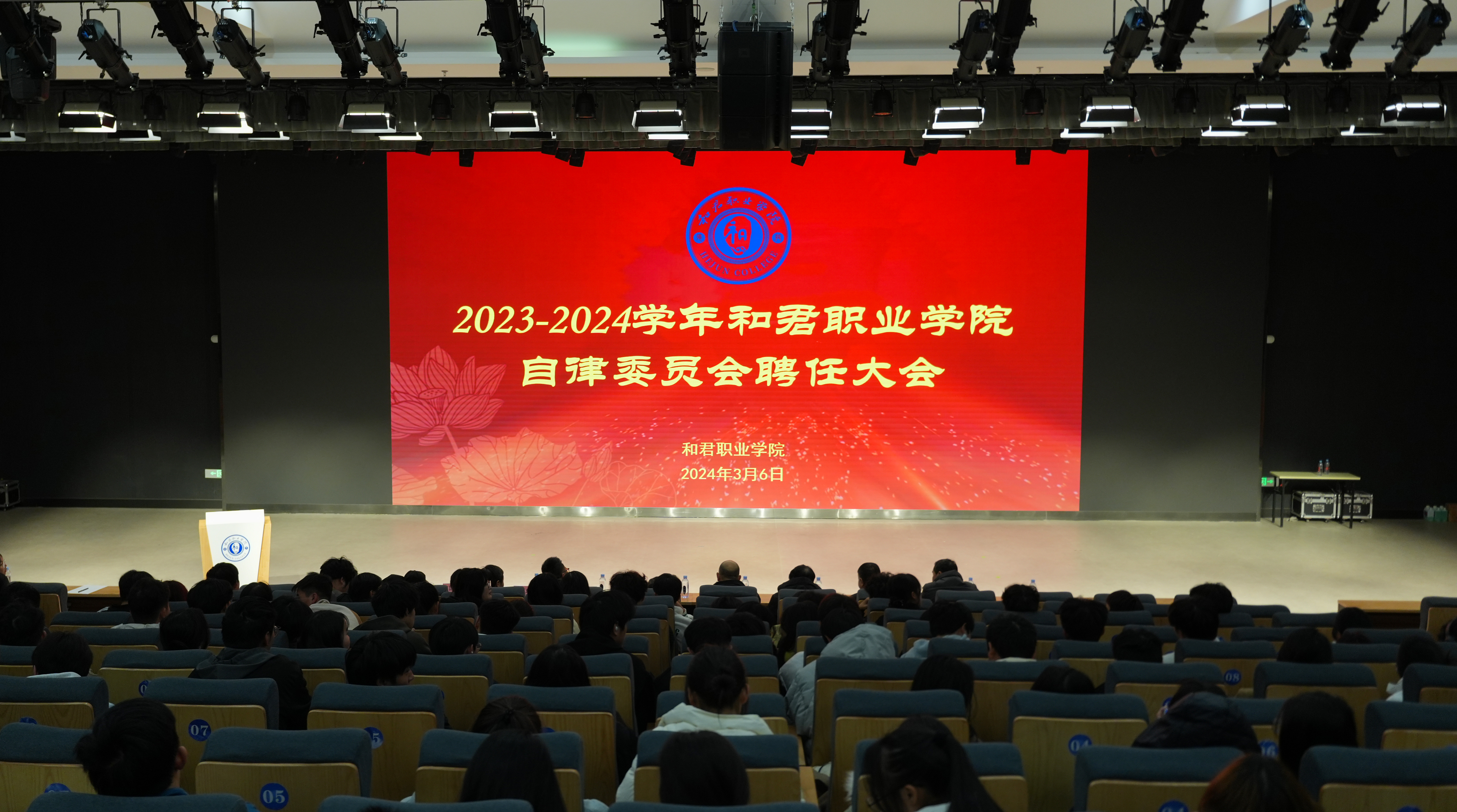 3月6日晚🈳,我校在大学礼堂召开第一届大学生自律委员会成立大会暨学生干部聘任仪式。党委书记王德平📡、校长赖章盛👵🏼🕴🏻、副校长王宗庆、纪委书记罗庆丰出席☘️,党政办公室、学生发展中心、后勤保卫服务中心等部门负责人、全体辅导员和部分学生参加。