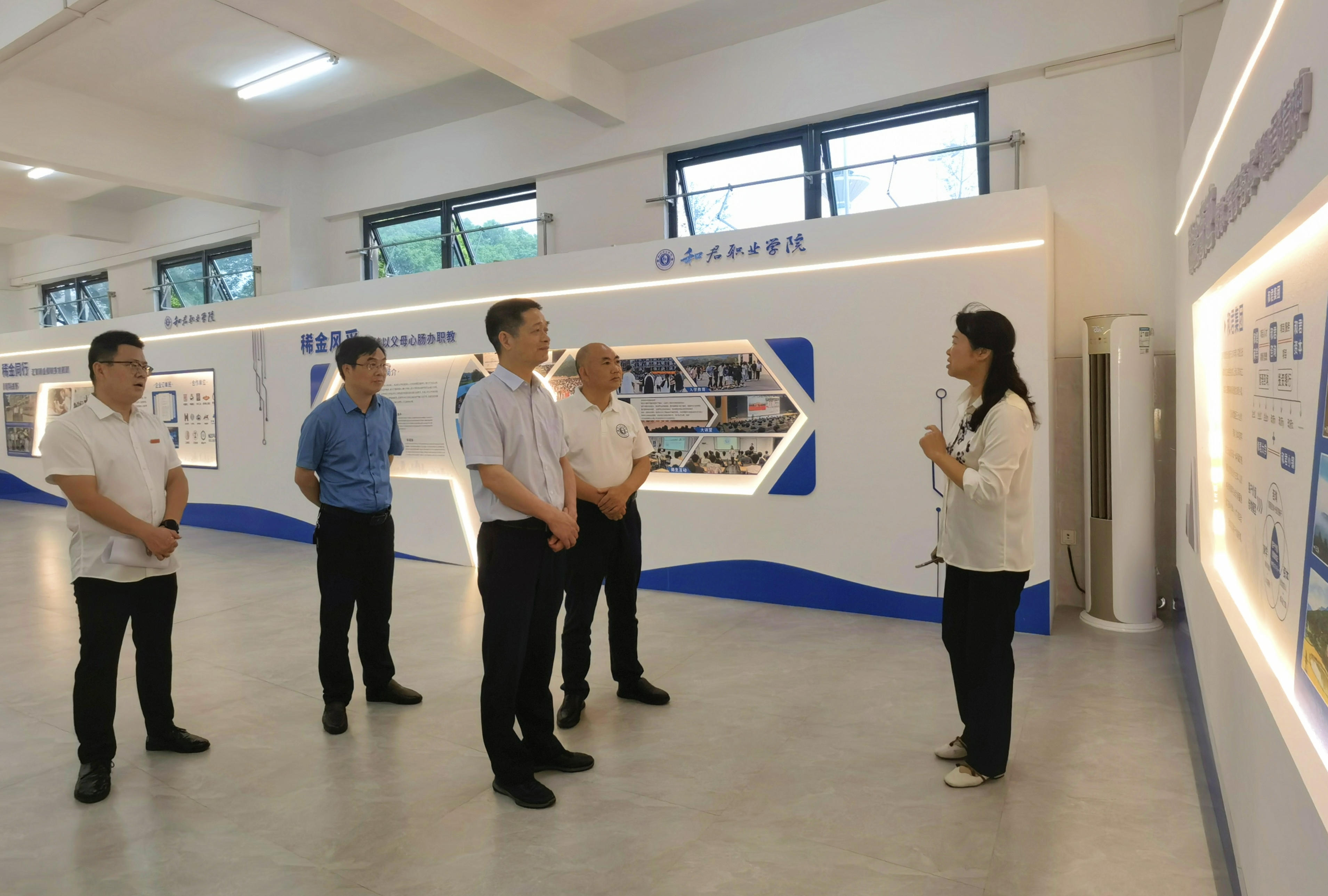 调研期间👱,胡敦祥先后实地参观了学院教学楼、运动场和院情展览☎🥼,观看了《稀金产业学院诞生记》宣传片🤌🏿,详细了解学院的建设历程🧜🏻♂️、二期校园规划、办学理念🪣、专业设置以及现场教学等方面的情况。