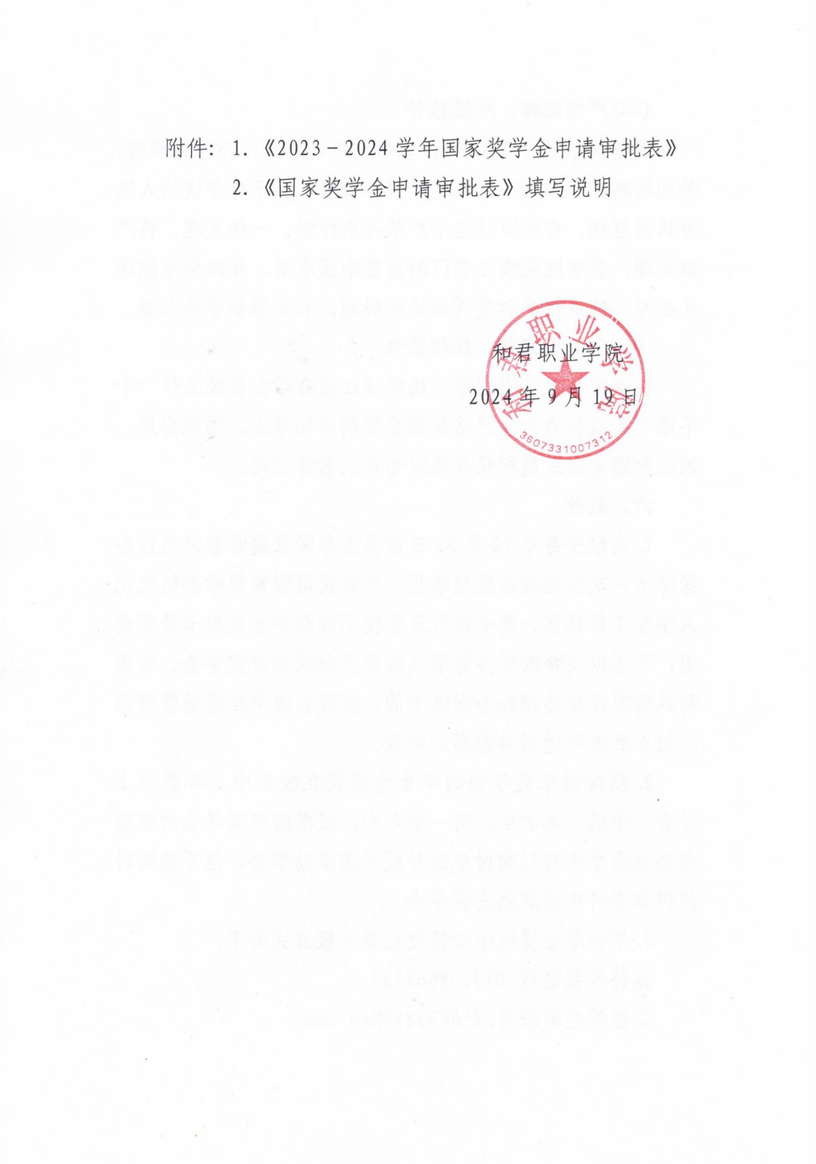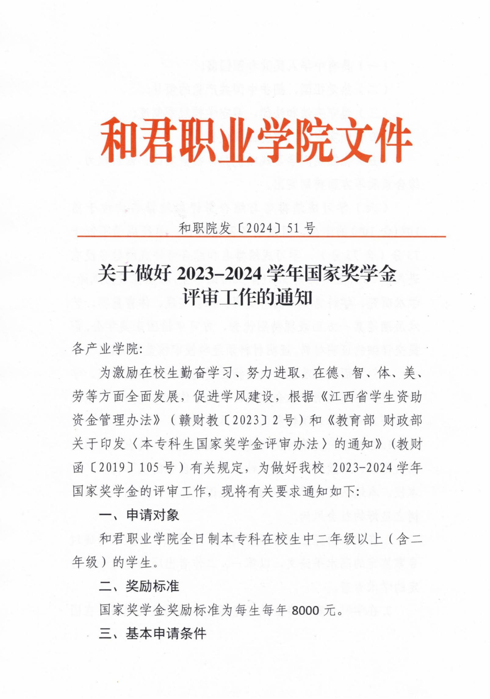 关于做好2023-2024学年国家奖学金评审工作的通知