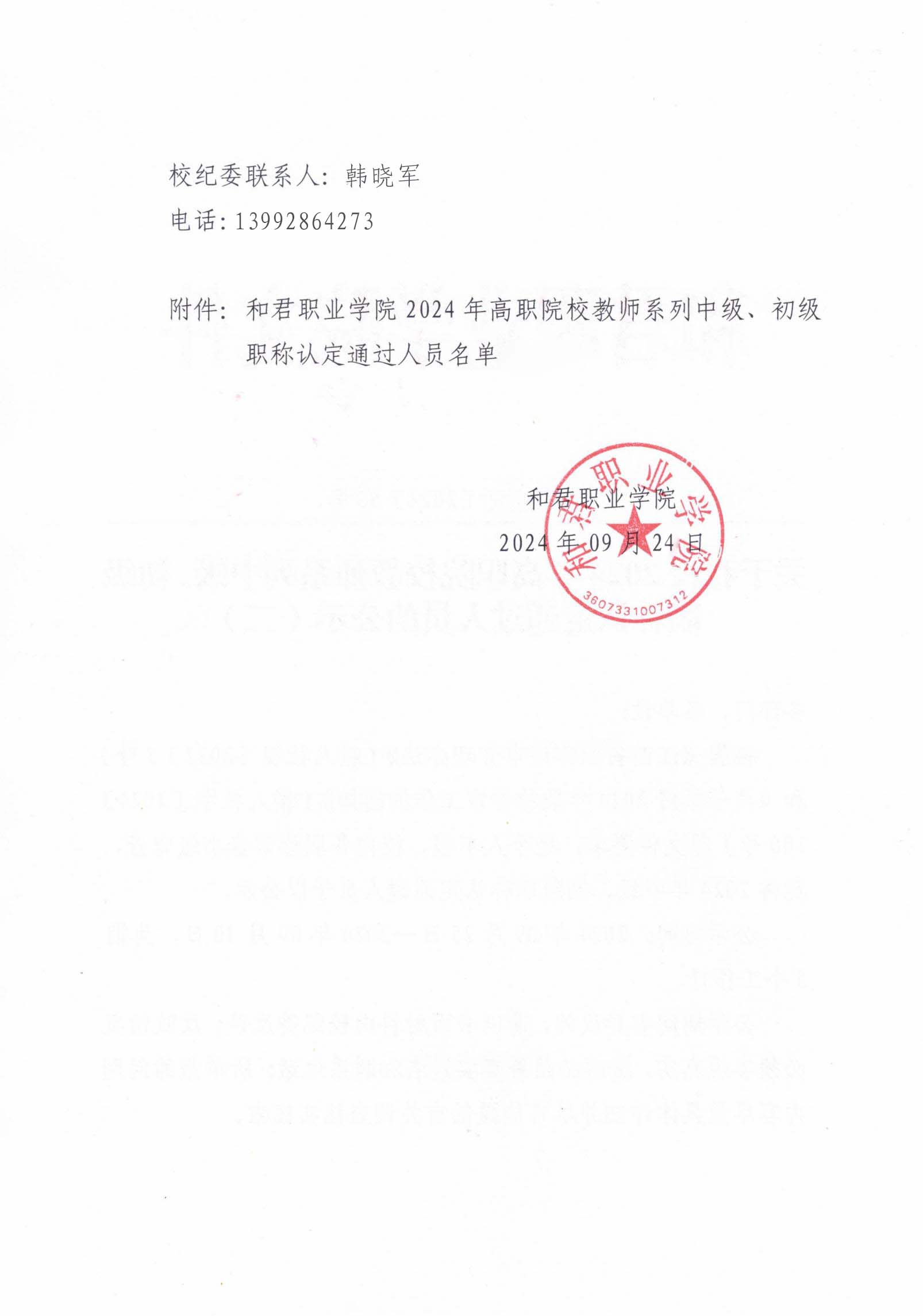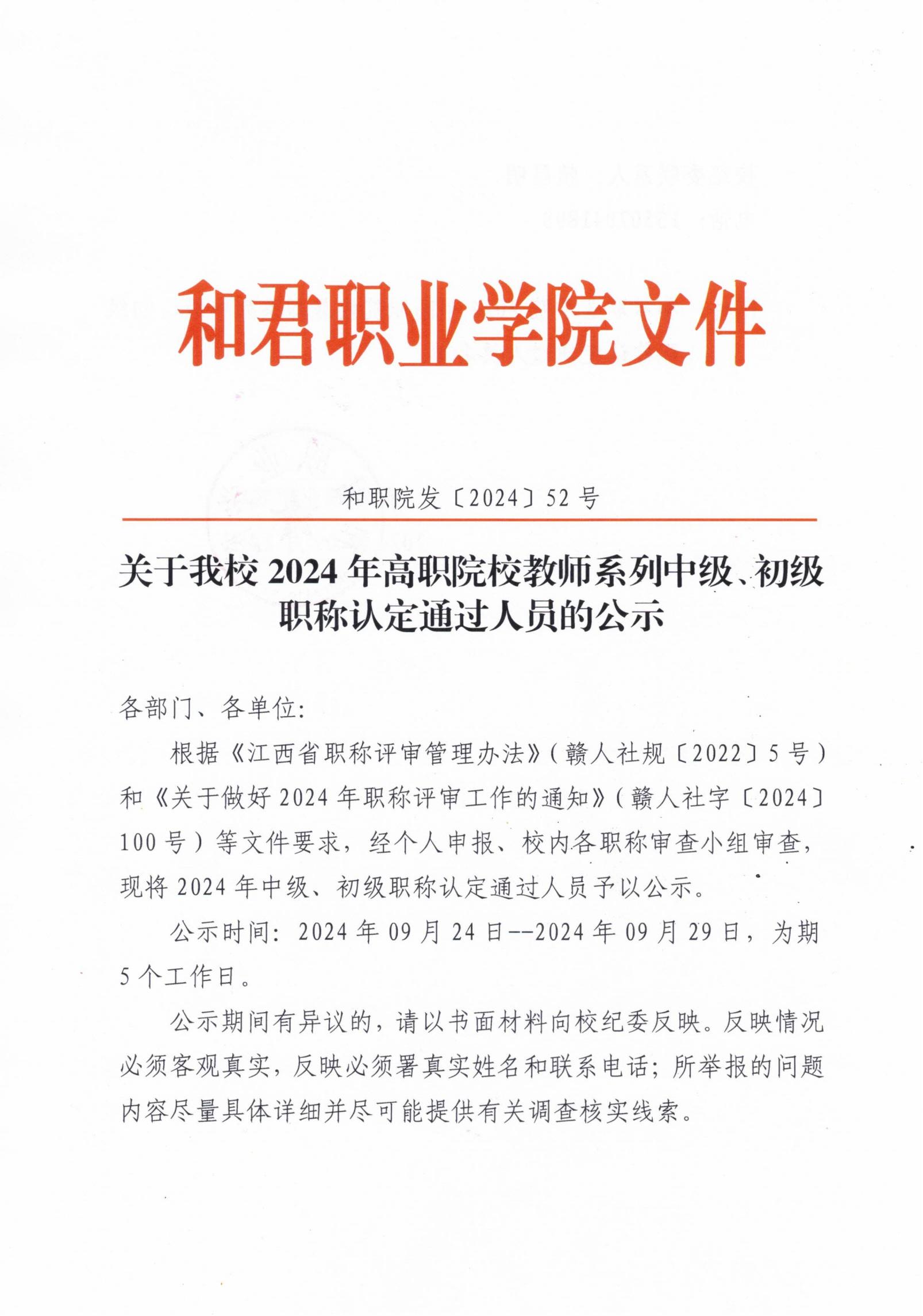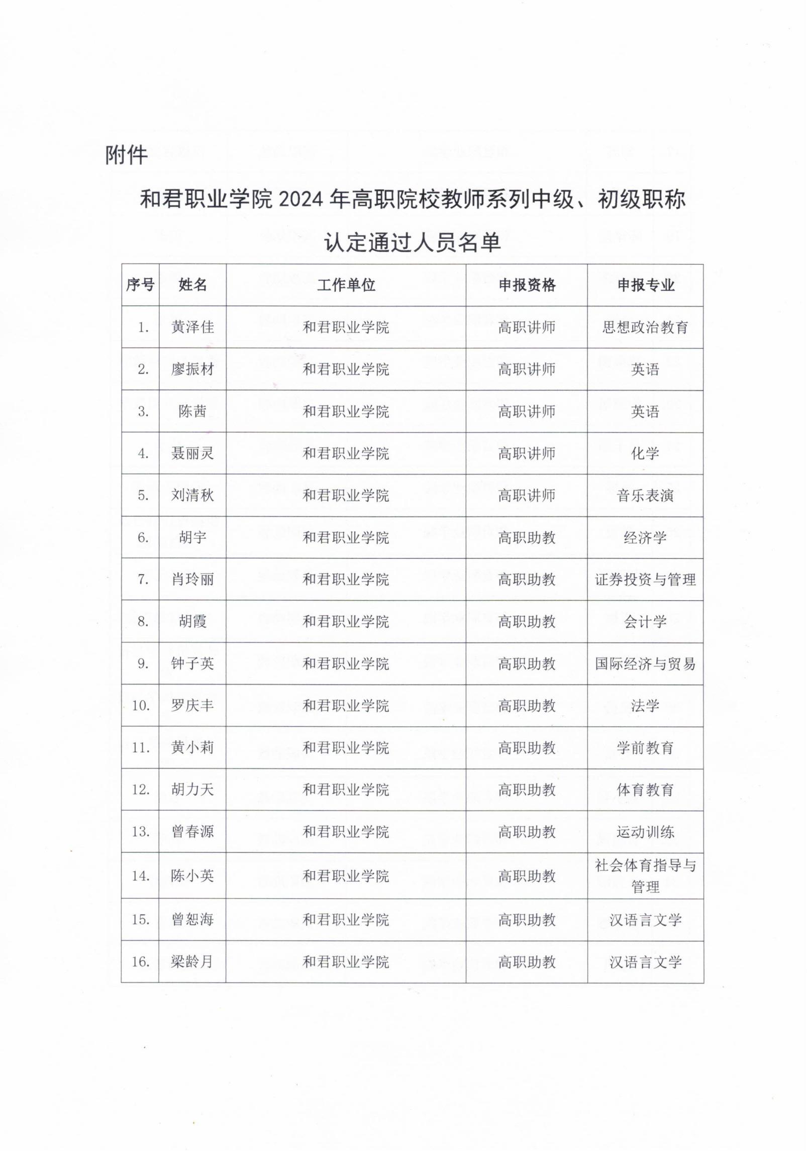 关于我校2024年高职院校教师系列中级、初级职称认定通过人员的公示