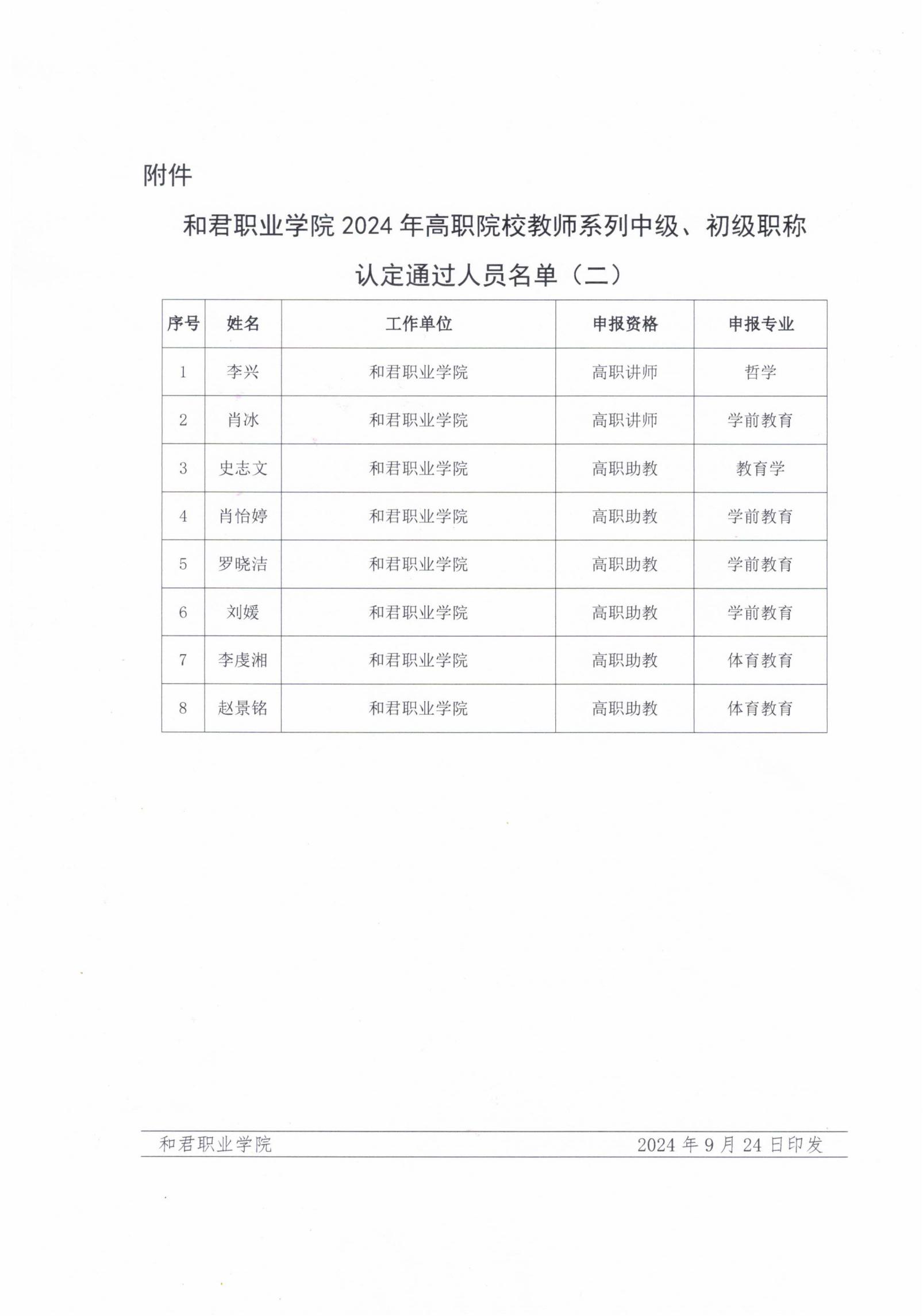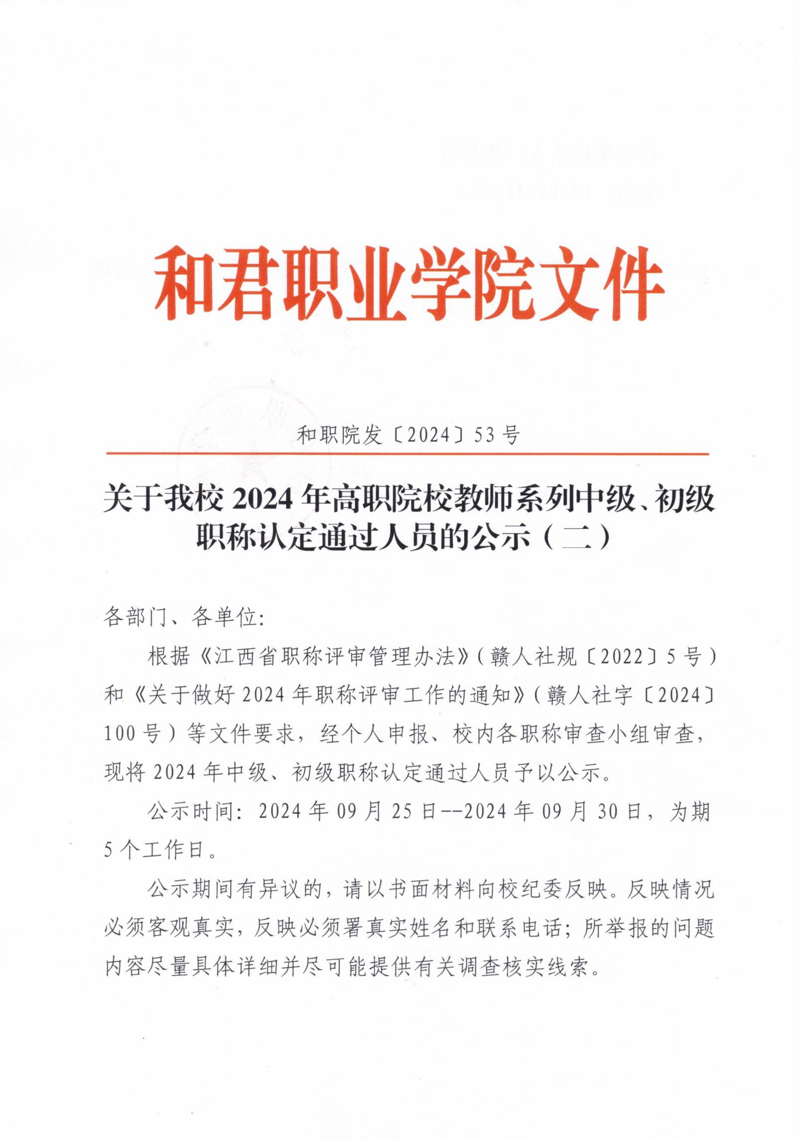 关于我校2024年高职院校教师系列中级🍴、初级职称认定通过人员的公示(二)