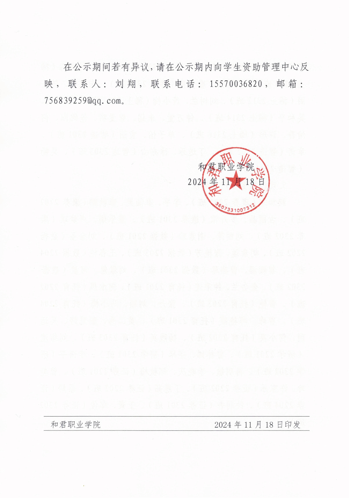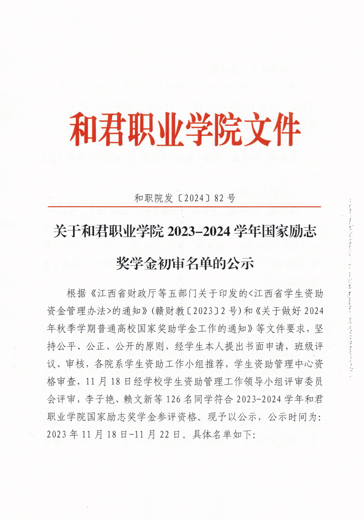 关于彩神xl2023-2024学年国家励志奖学金初审名单的公示
