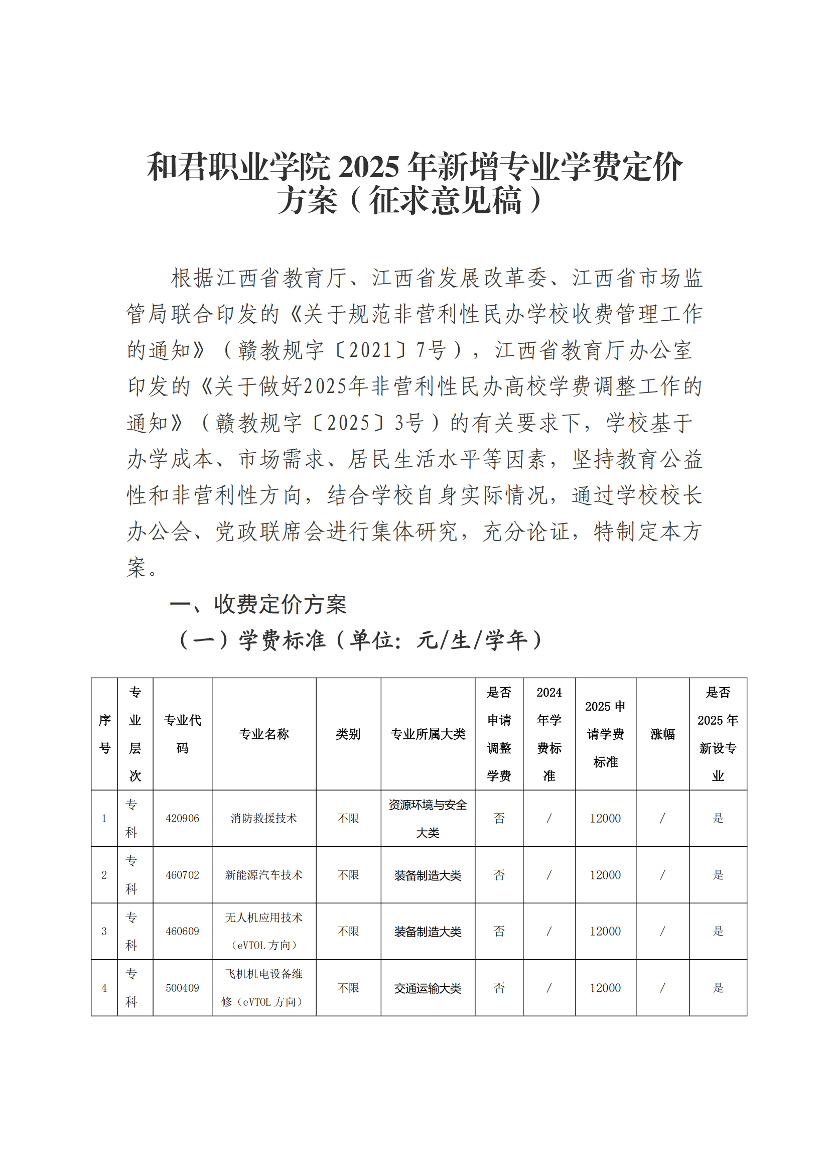 彩神xl2025年新增专业学费定价 方案(征求意见稿)