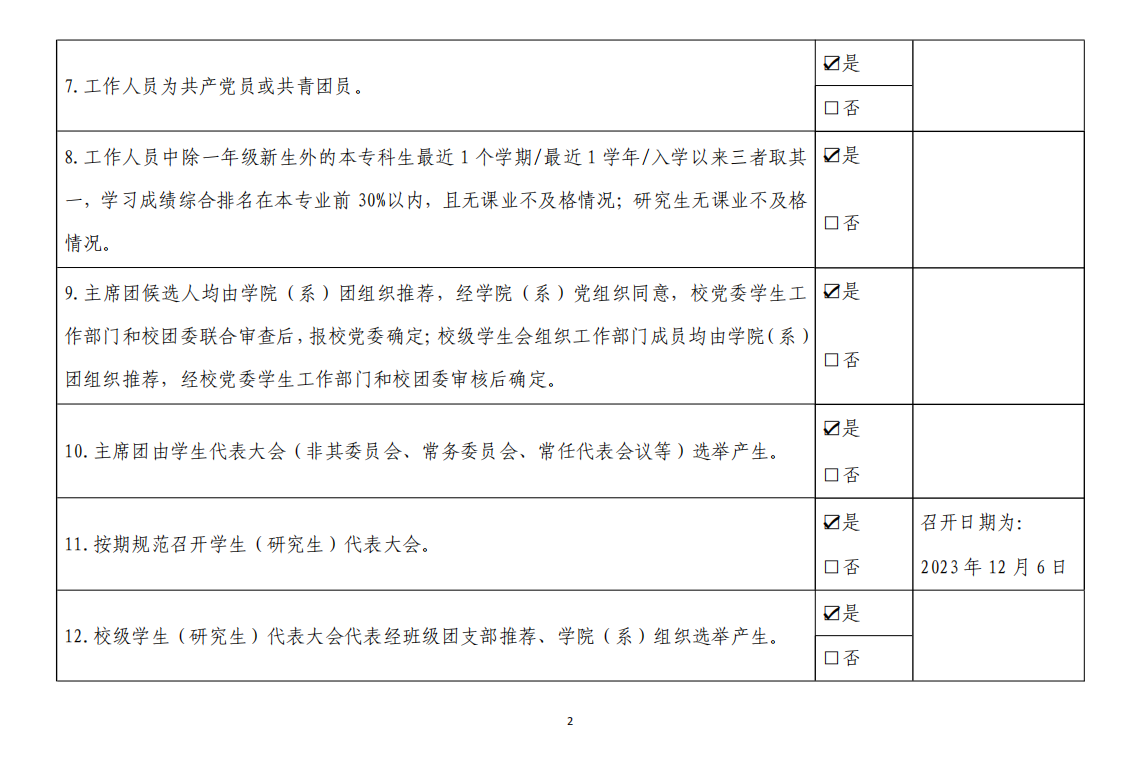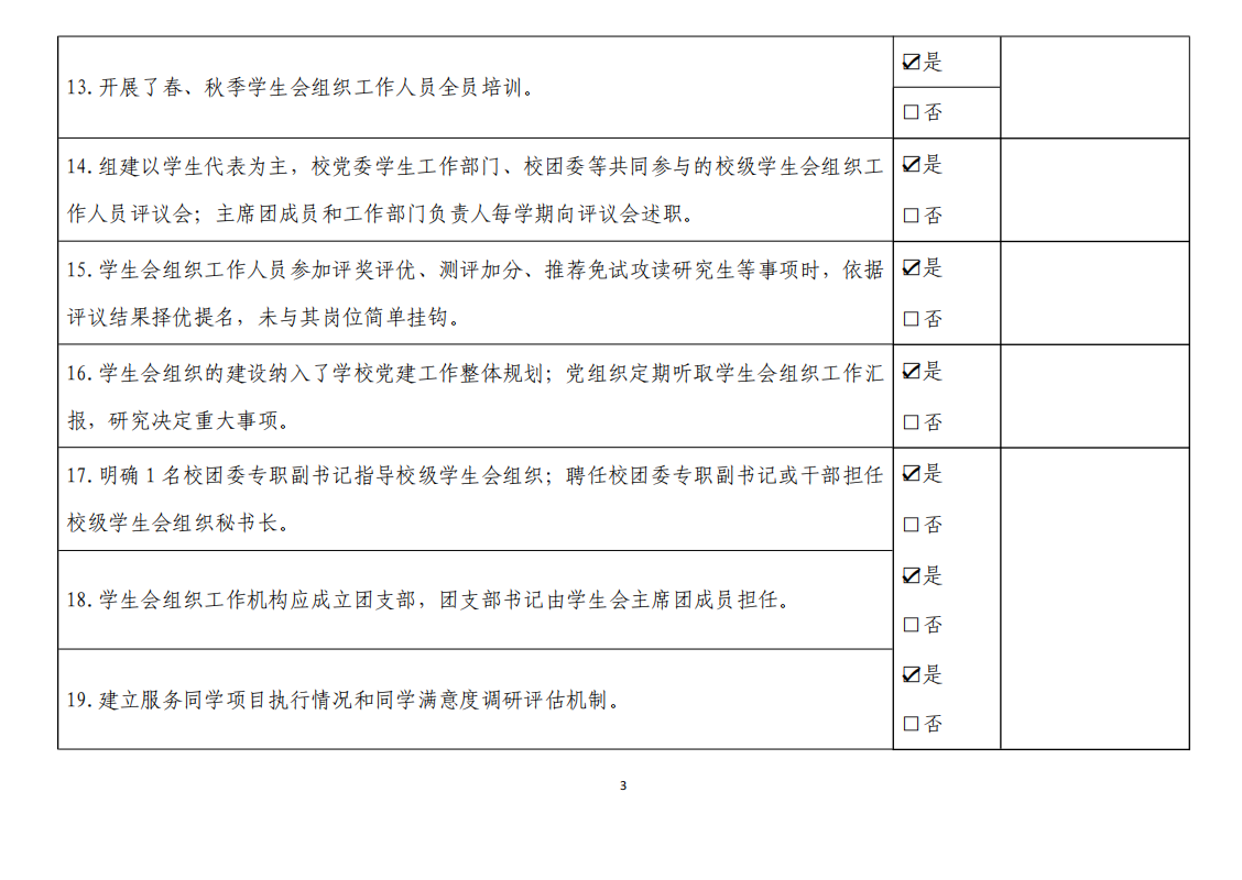 (二)落实《学生会干部自律公约》、《关于学联学生会工作人员改进作风服务的若干规定》,践行学生会宗旨,加强自我教育管理,增强政治性👩🏻🦯、先进性🧖、群众性,防止机关化、行政化、贵族化、娱乐化🤸🏻♂️。(5分)