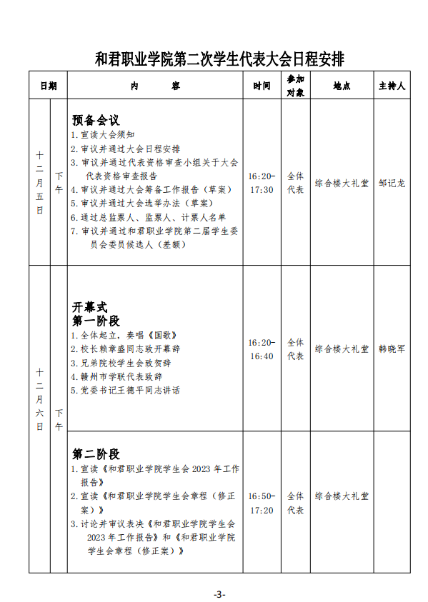 (三)成立下一届学代会筹委会并召集下一届全校学生代表大会;