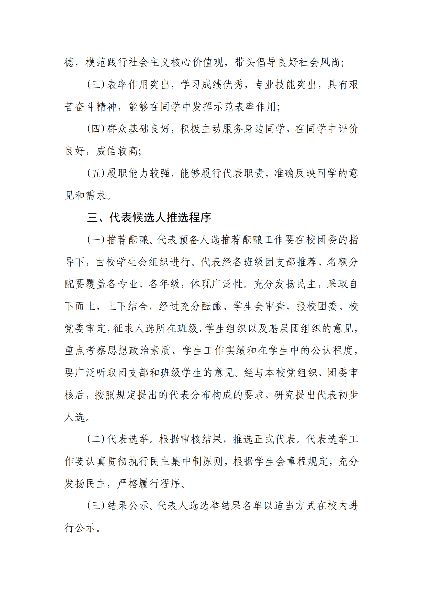 (一)学生委员会委员候选人由学校民主选举推荐🤰🏽↔️,经资格审核通过,由校学生代表大会代表以无记名投票的方式差额选举产生;