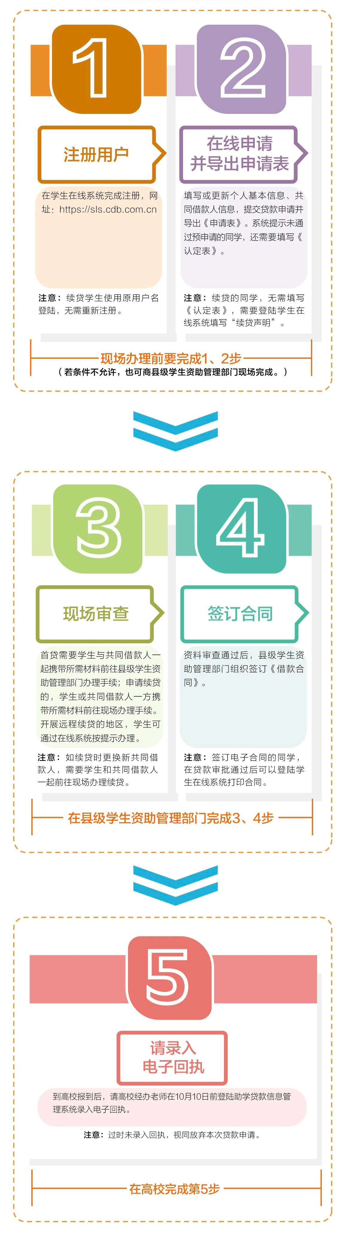 1.首次贷款申请需借款学生和共同借款人前往当地县教育局资助中心进行现场确认。